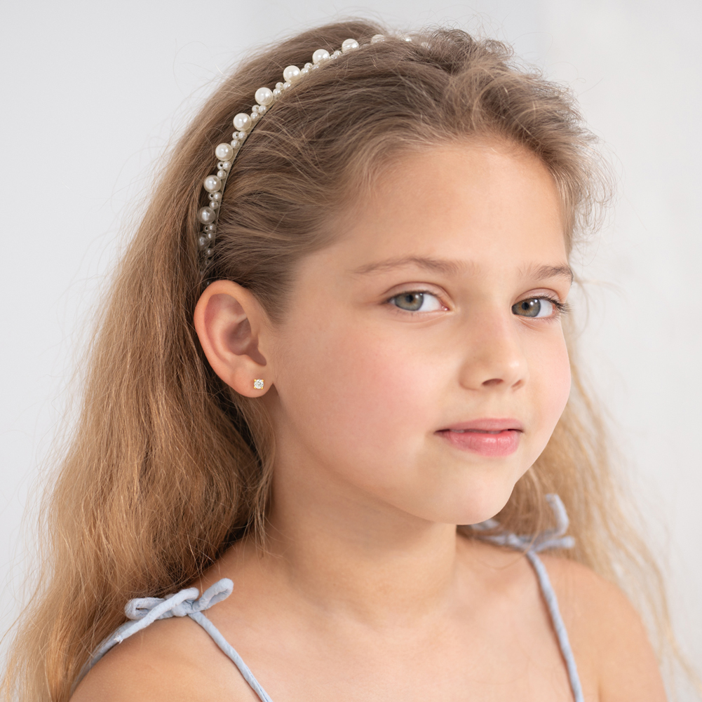 14k Yellow Gold Clear 2,3,5mm Cubic Zirconia Prong Screw Back Earrings for Girls