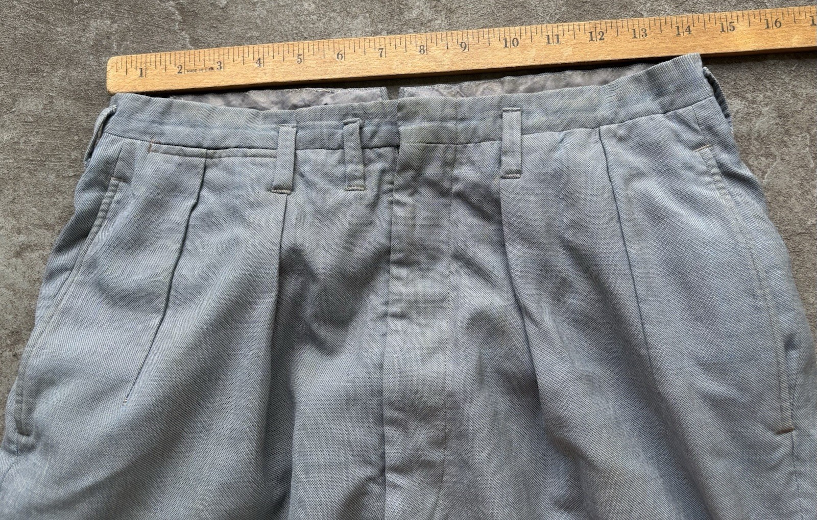 как выглядит VTG 50s Men s Baggy Light Blue Drop Loop Pleated Pants 28x26 Broken Talon Zipper фото