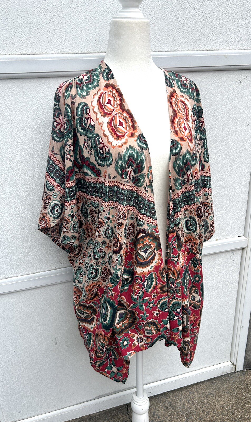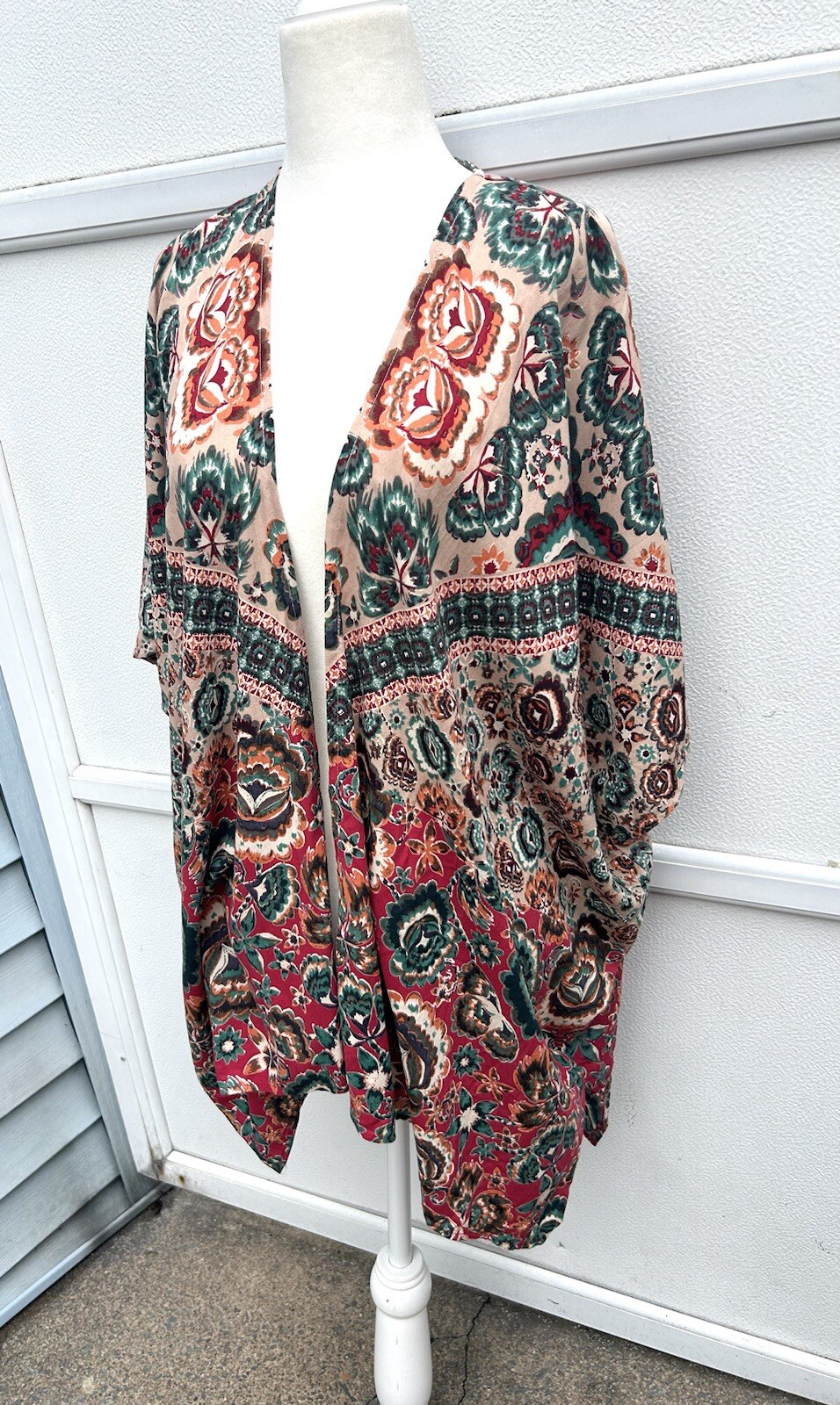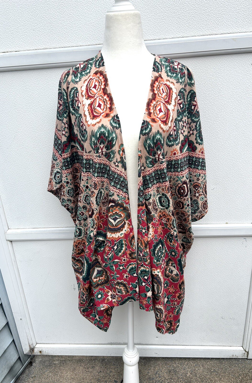 как выглядит Angie Kimono Top Women S Open Front Multi Colorful Cover Up Boho Festival Artsy фото