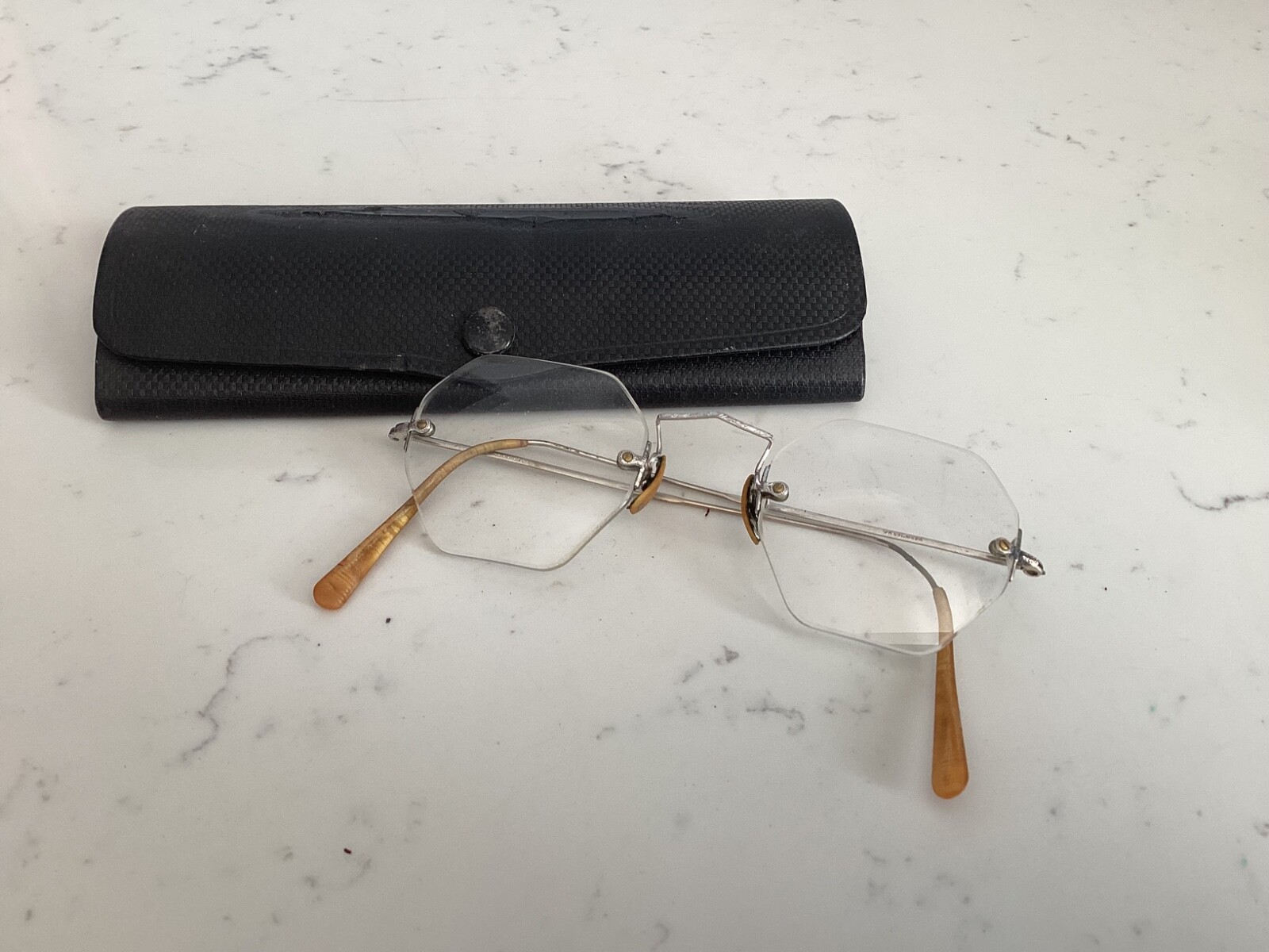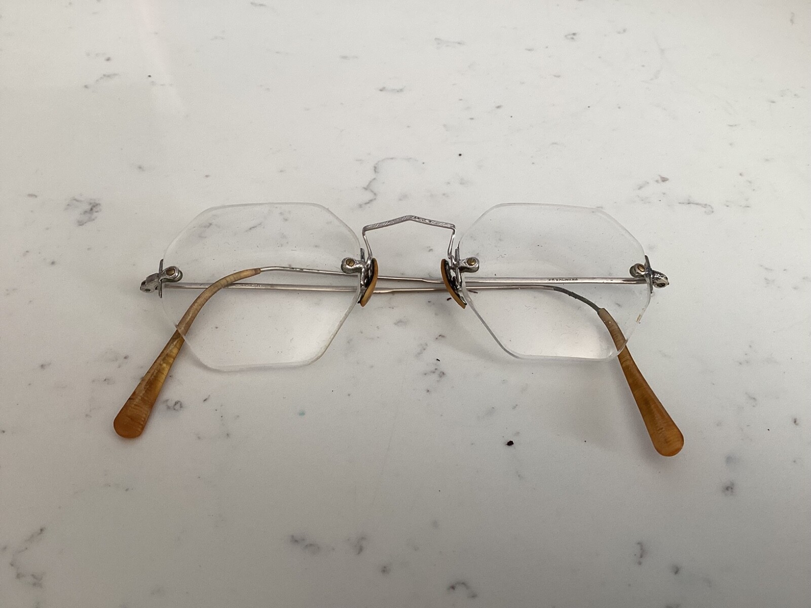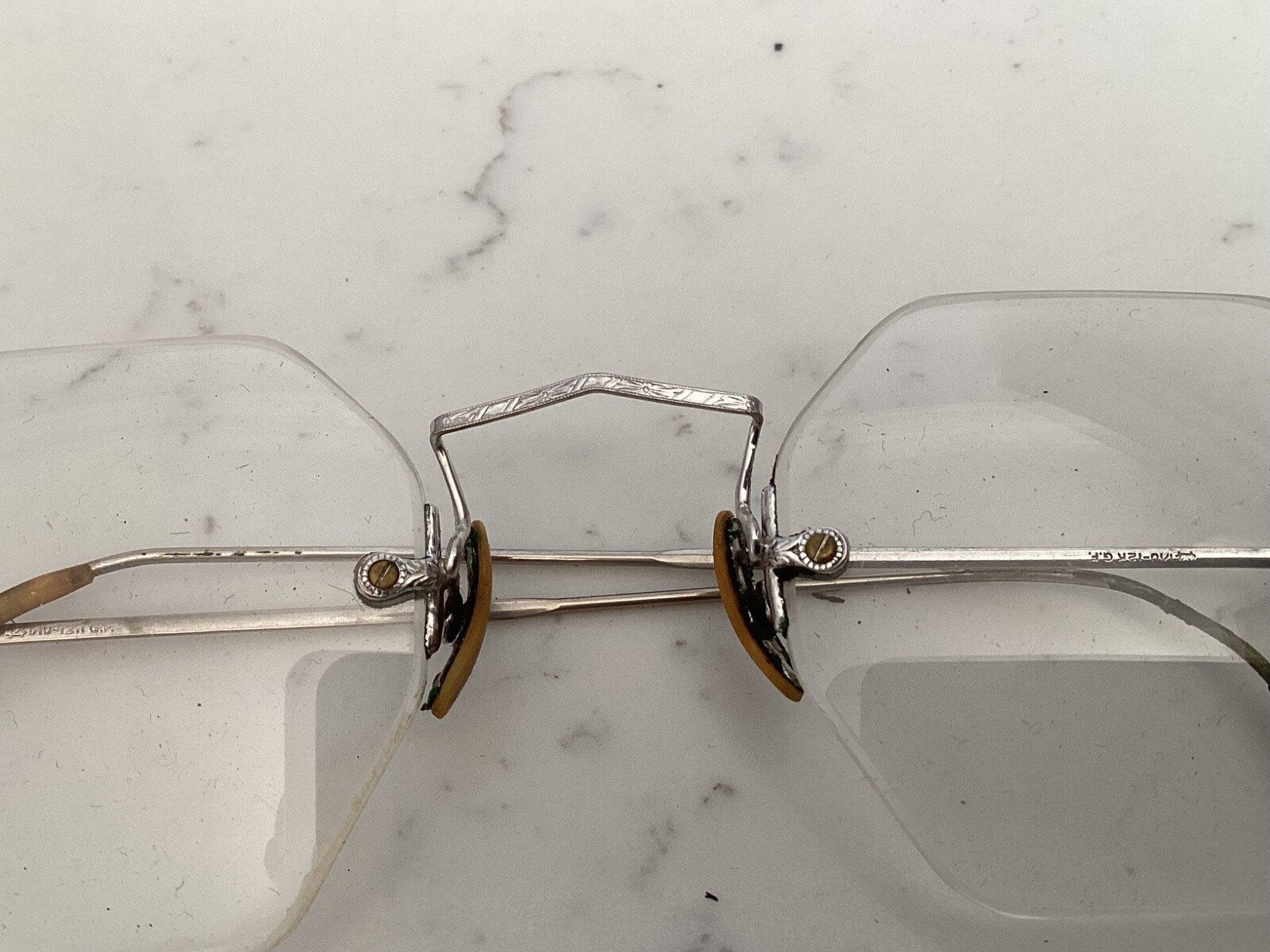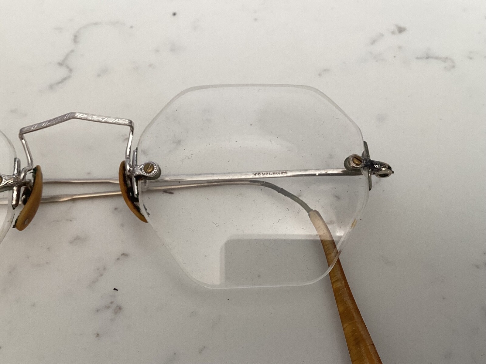 как выглядит RARE ANTIQUE AUTHENTIC SIGNED 1/10 12KT GOLD FILLED WIRER FRAMED EYE GLASSES NR фото