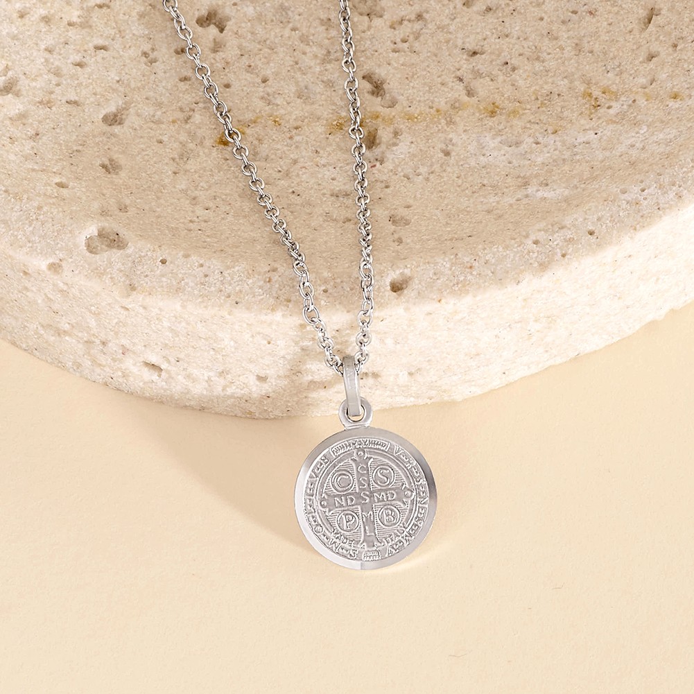 как выглядит St Benedict Medal 13mm Toddler/Kids Necklace Religious - Sterling Silver фото