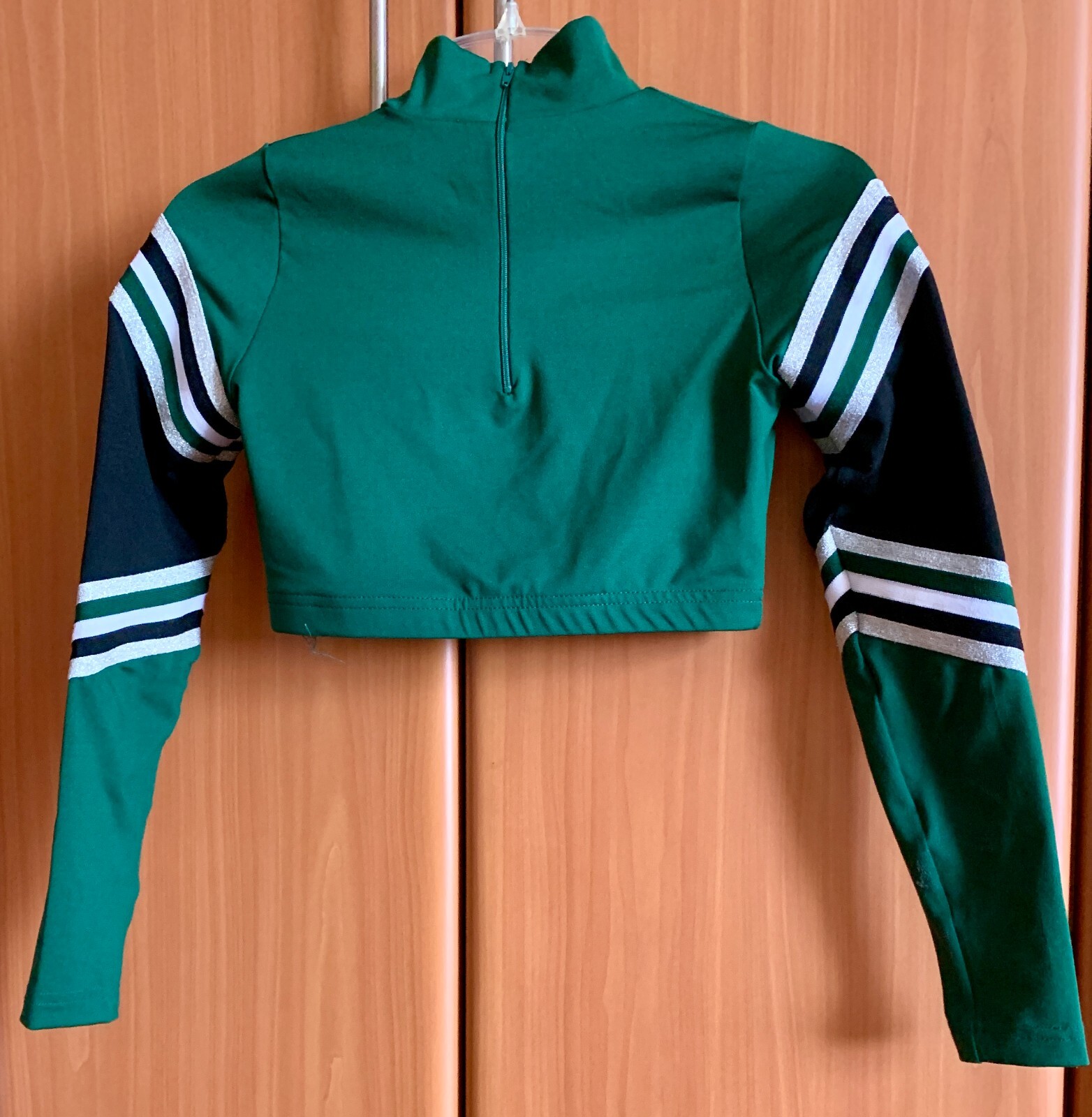как выглядит Varsity Spirit Cheer Crop Top Performance Wear Green/BlackLong Sleeve Size M фото