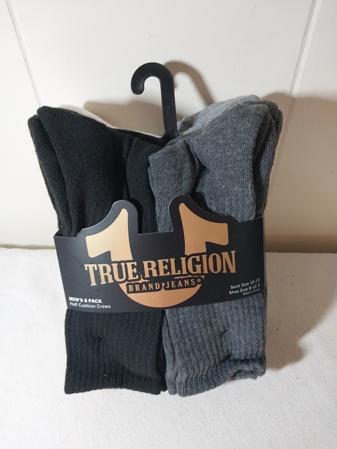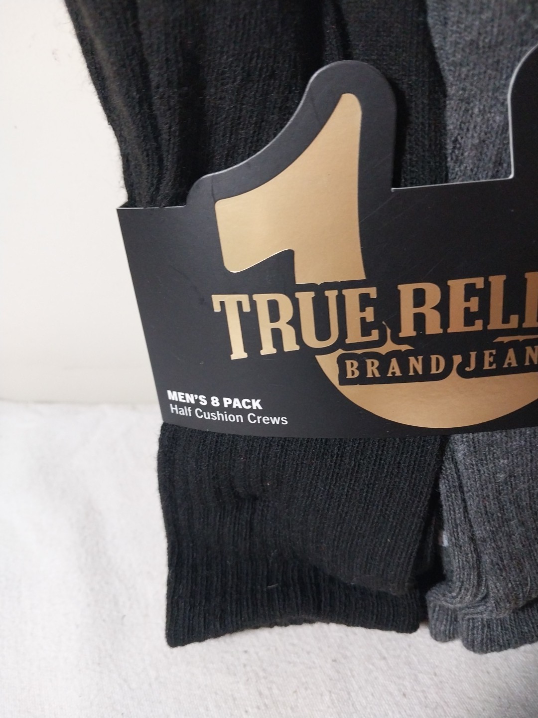 True Religion Mens 8 Pack Half Cushion Crew Socks Black White Gray Sz 8-12.5