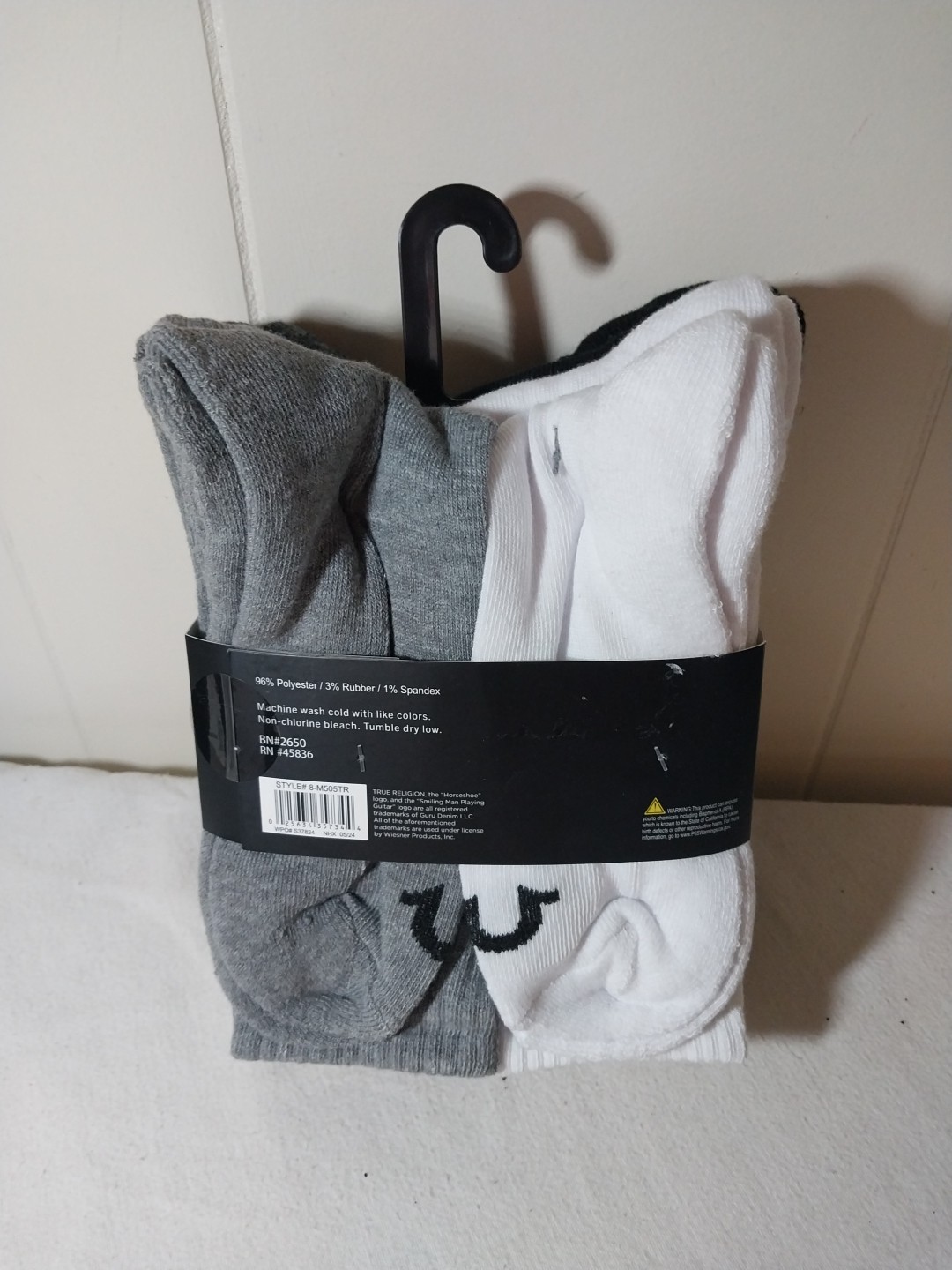 как выглядит True Religion Mens 8 Pack Half Cushion Crew Socks Black White Gray Sz 8-12.5 фото