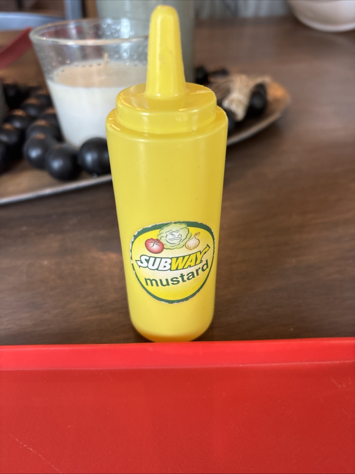 как выглядит Subway Play Food Vintage Mustard Squeeze Bottle And Tray Pretend Play Kitchen фото