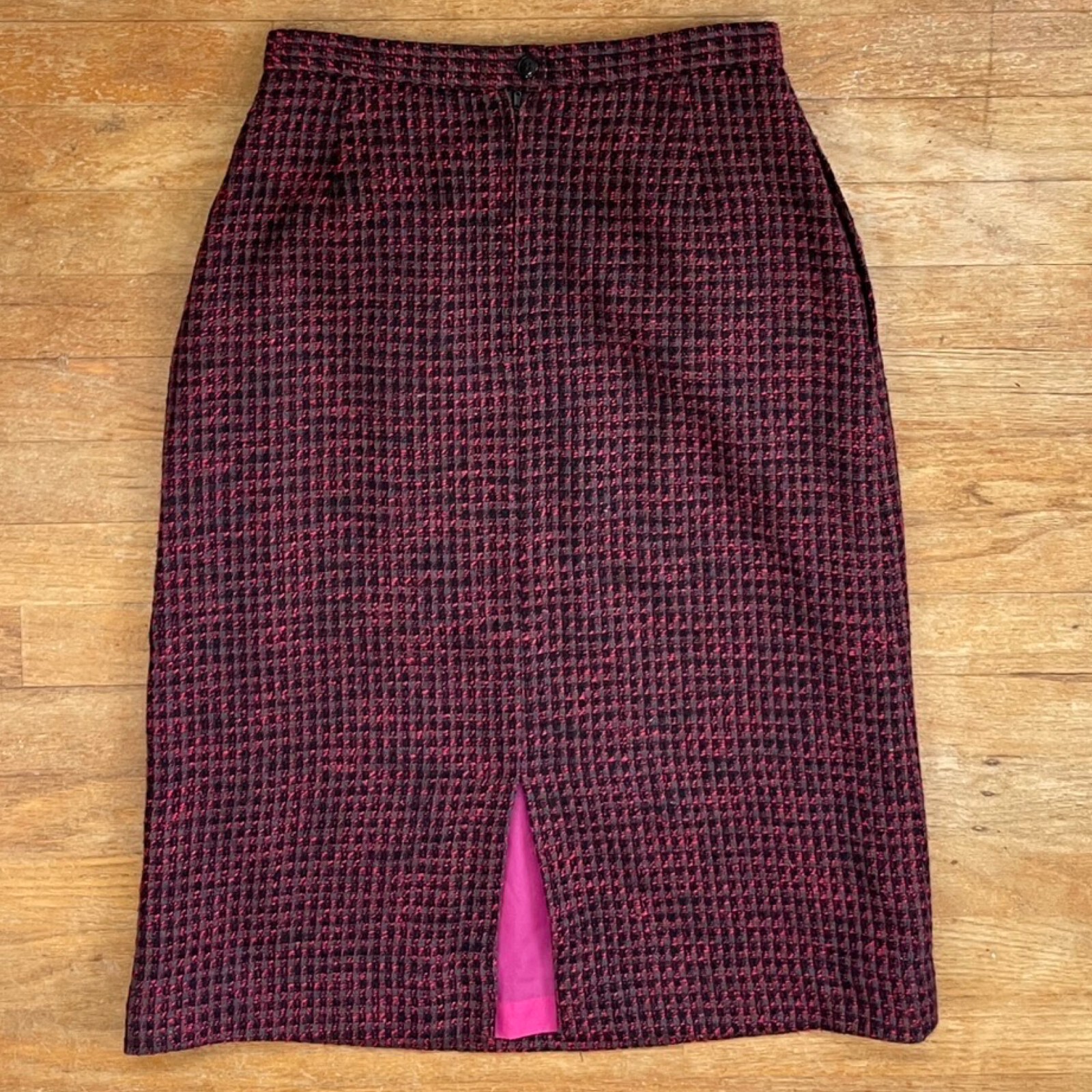 как выглядит Vintage Pink Tweed Pencil Skirt Size Small 28" Waist 1980s Woven Wool/Silk Blend фото