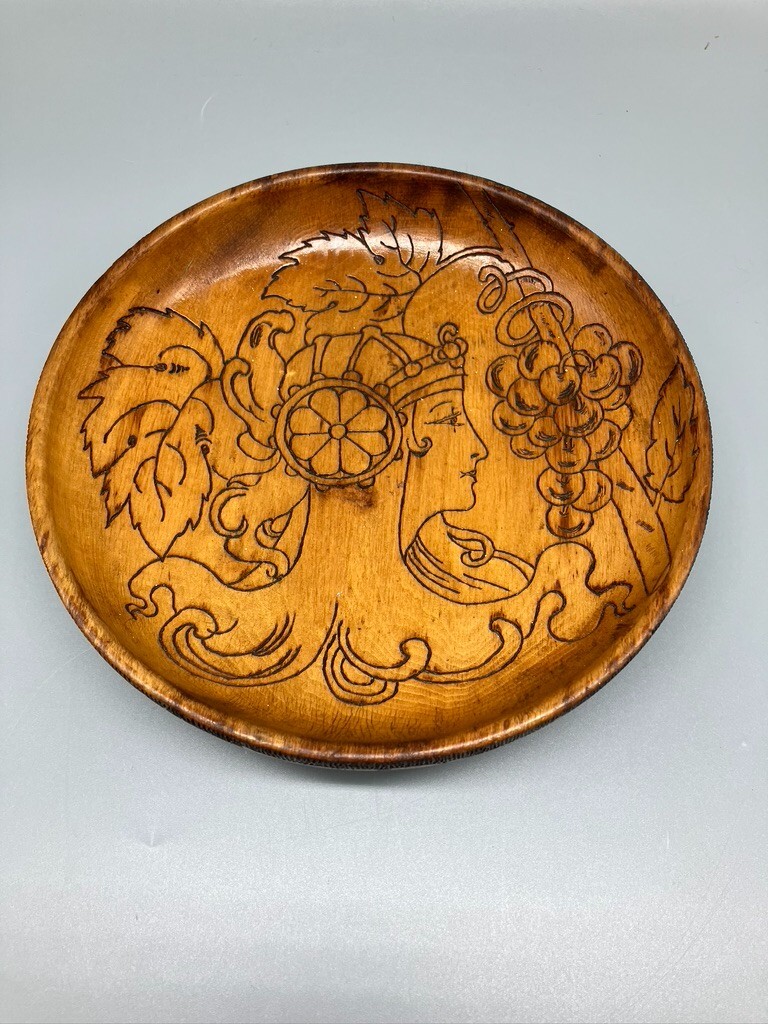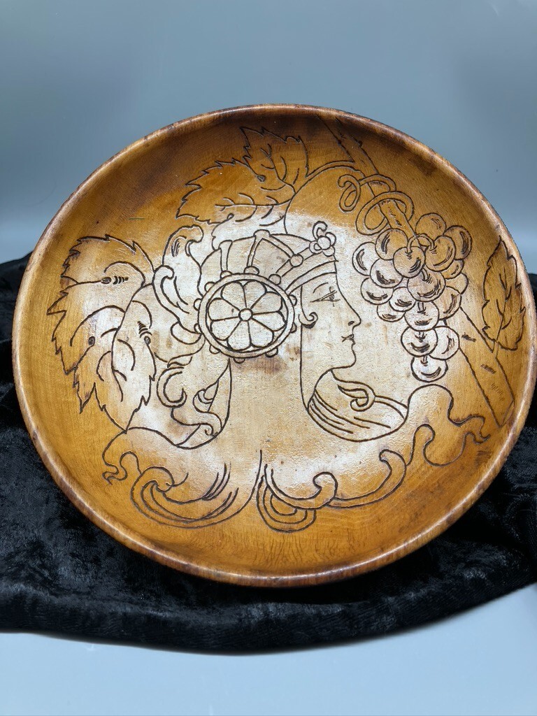 как выглядит FLEMISH ART PYROGRAPHY BOWL ART NOUVEAU WOMAN фото