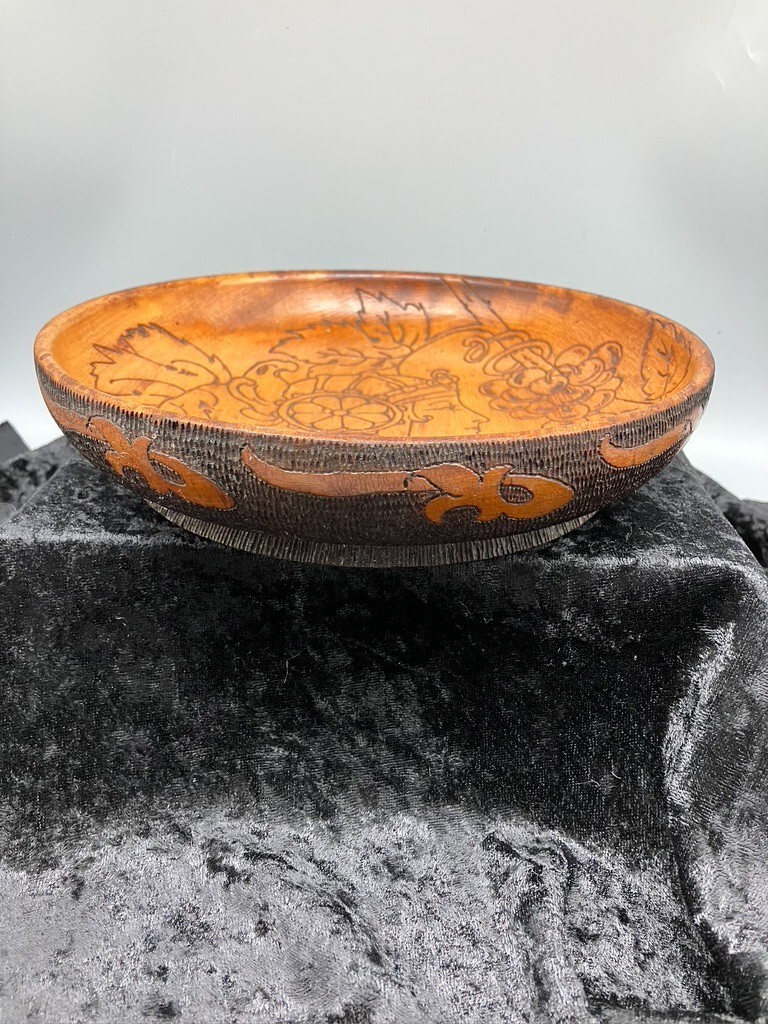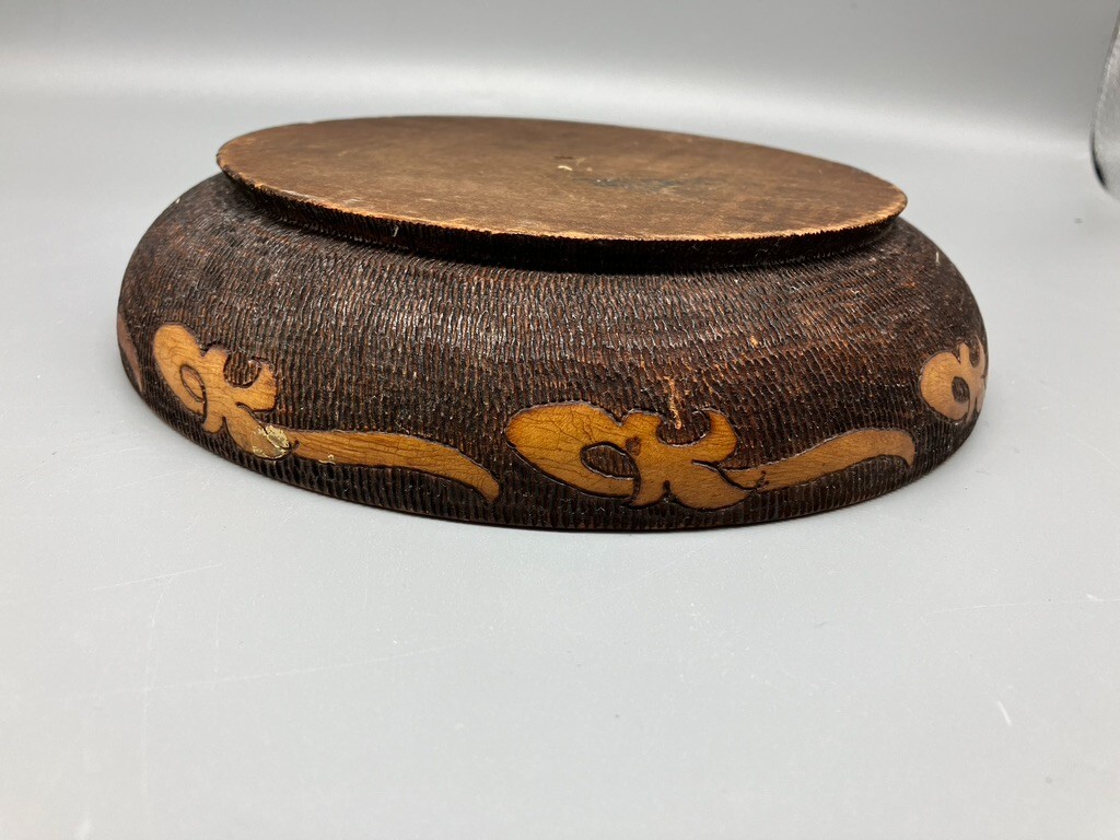 FLEMISH ART PYROGRAPHY BOWL ART NOUVEAU WOMAN