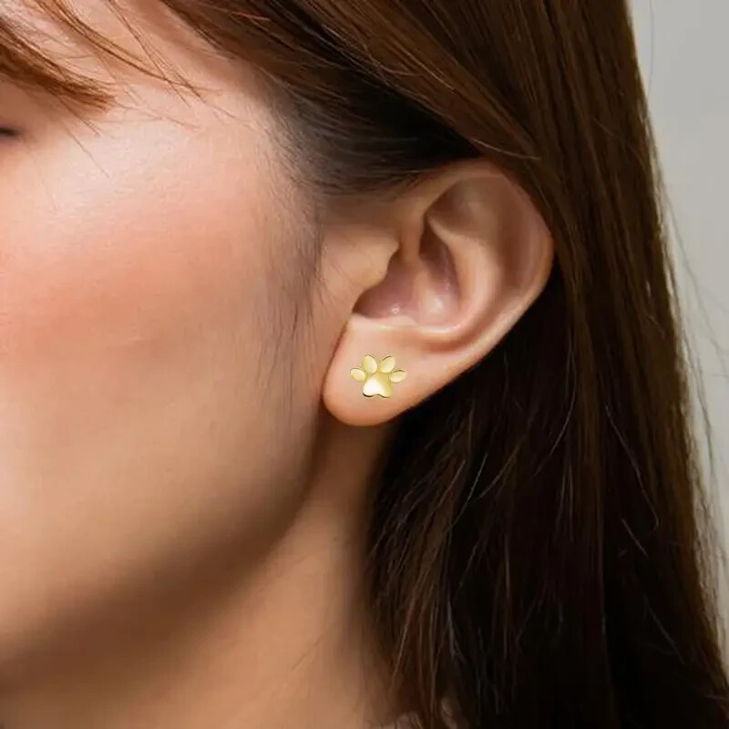 Sterling Silver 925 Handcrafted Dog Paw Fashion Stud Earring