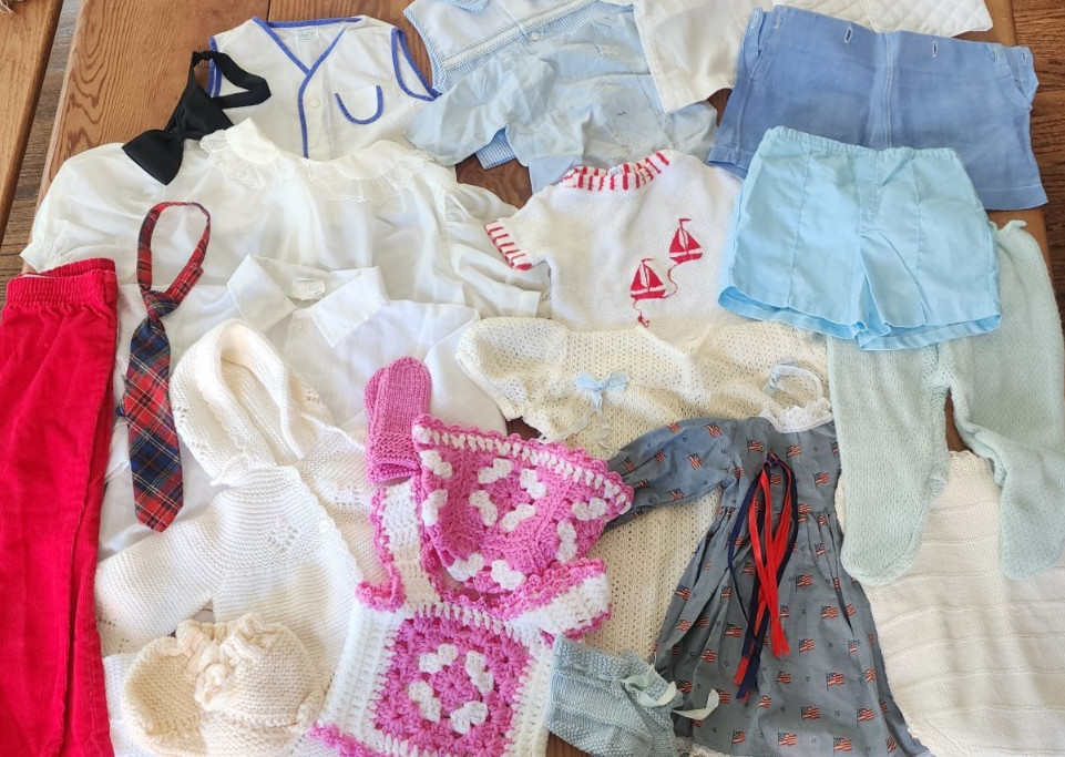 Vintage Girls Boy Baby Toddler Dresses Tops Pants Doll Clothes Large Lot of 25