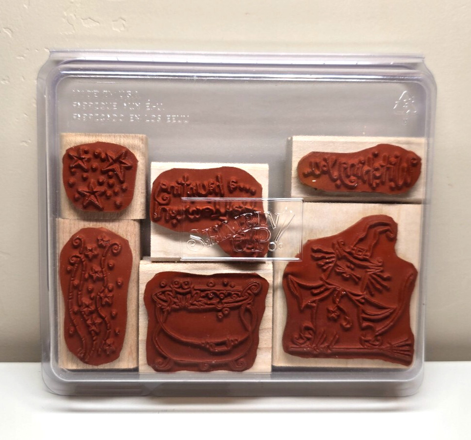 как выглядит Stampin Up 2007 "Haunting Halloween" wood-mounted rubber stamp set фото