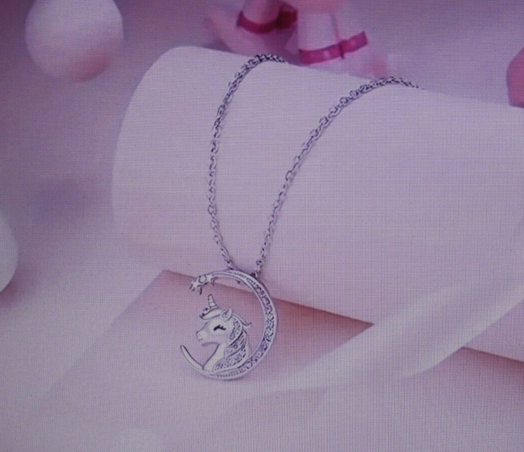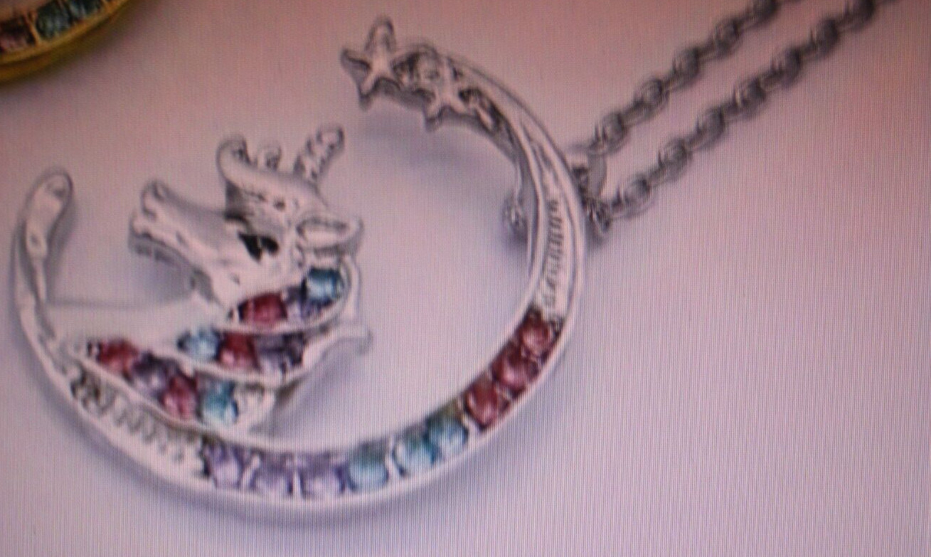 Unicorn In Moon Colorful Rhinestone Pendant Necklace Silver 20 Girls Jewelry