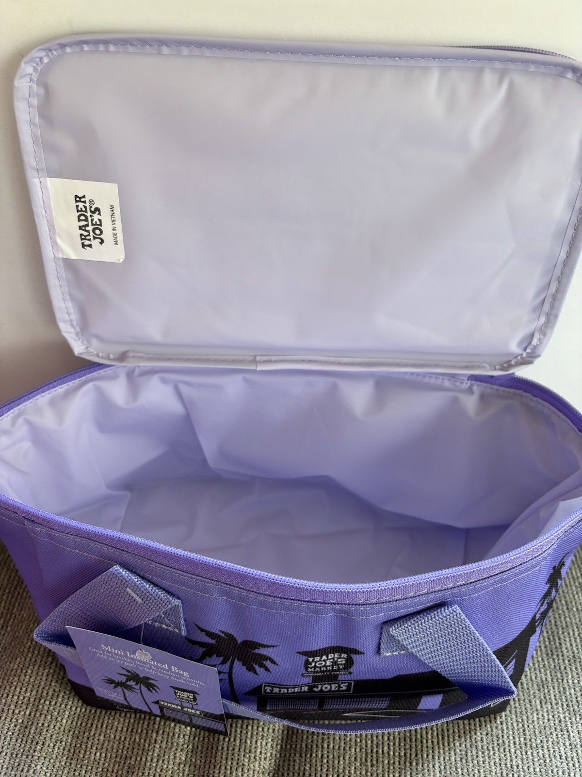 как выглядит TWO Trader Joes Mini Insulated Cooler Tote Lunch Bags BOTH Pink Purple NWT фото