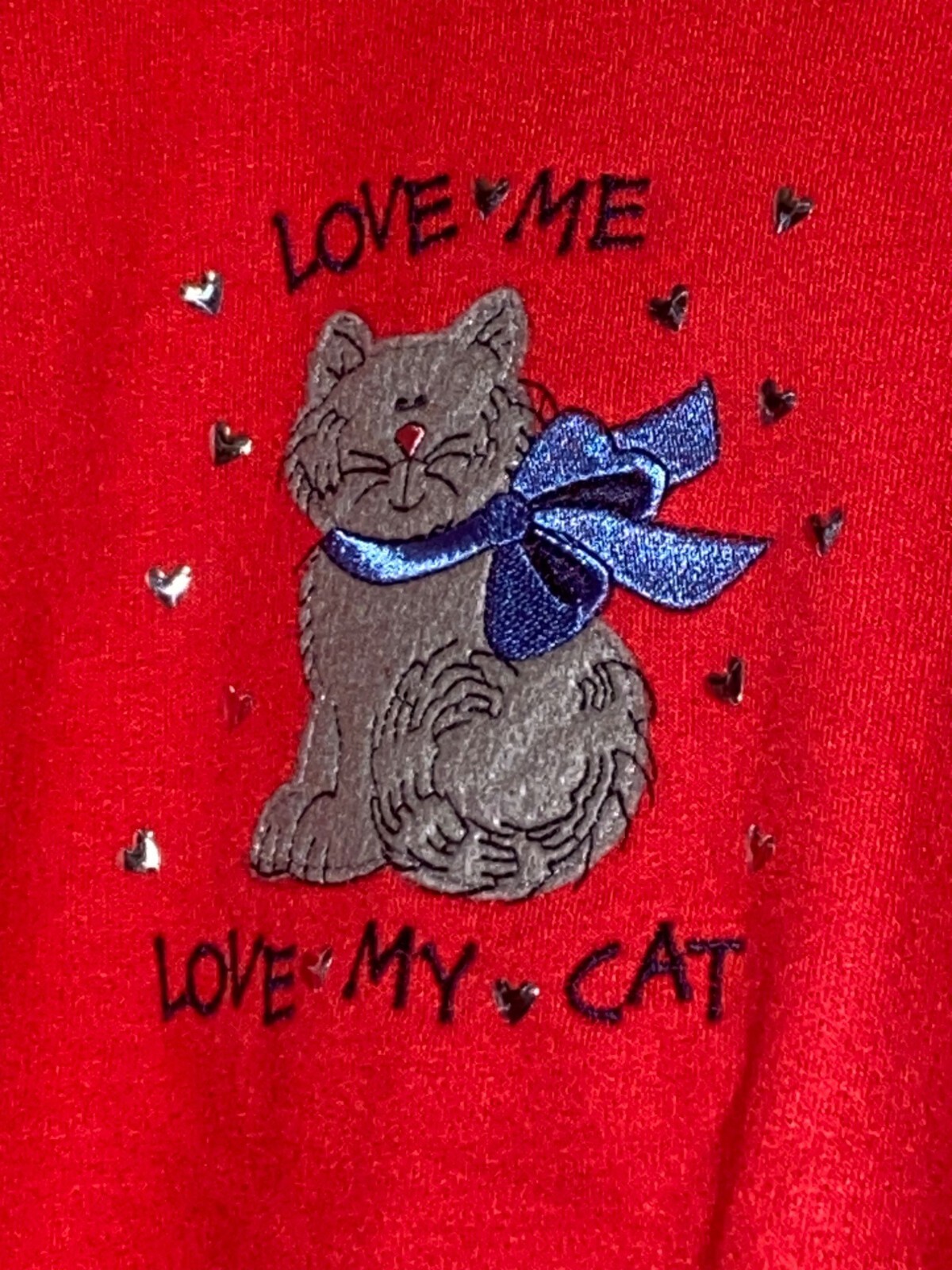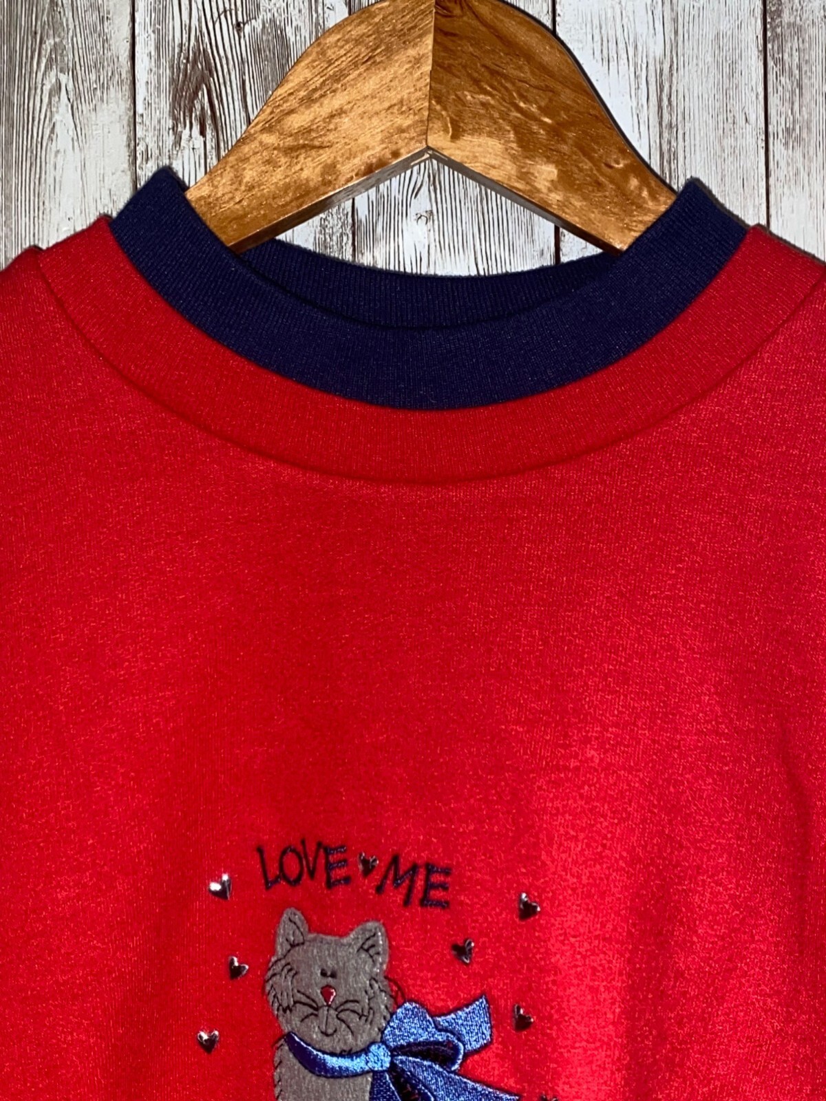 Vintage LOVE ME LOVE MY CAT Sweatshirt Granny Grandmacore Embroidered Large