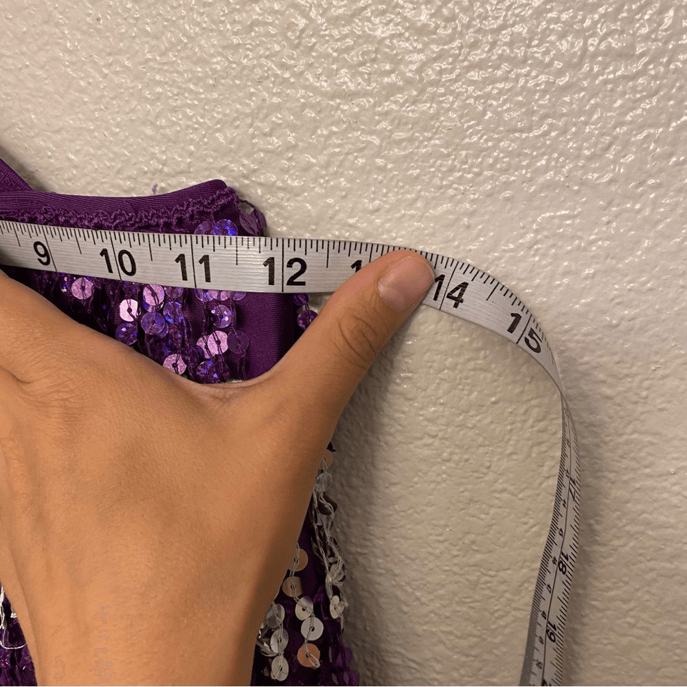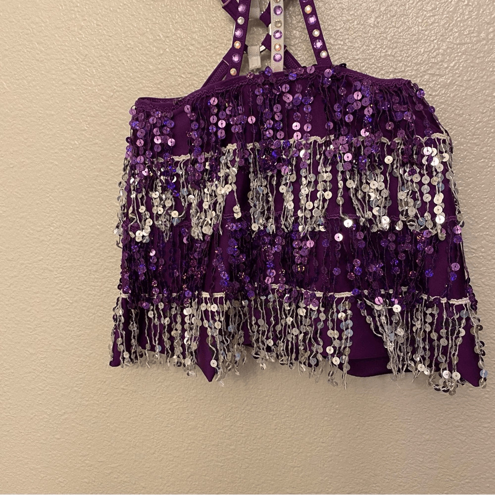 как выглядит Glamour dance costume purple sequin gems rhinestone fringe embellished child M/L фото