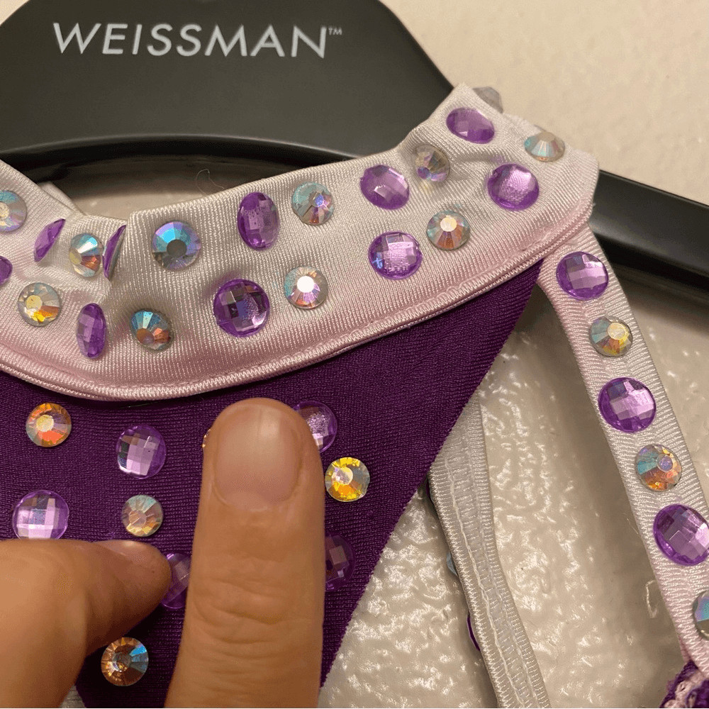 Glamour dance costume purple sequin gems rhinestone fringe embellished child M/L