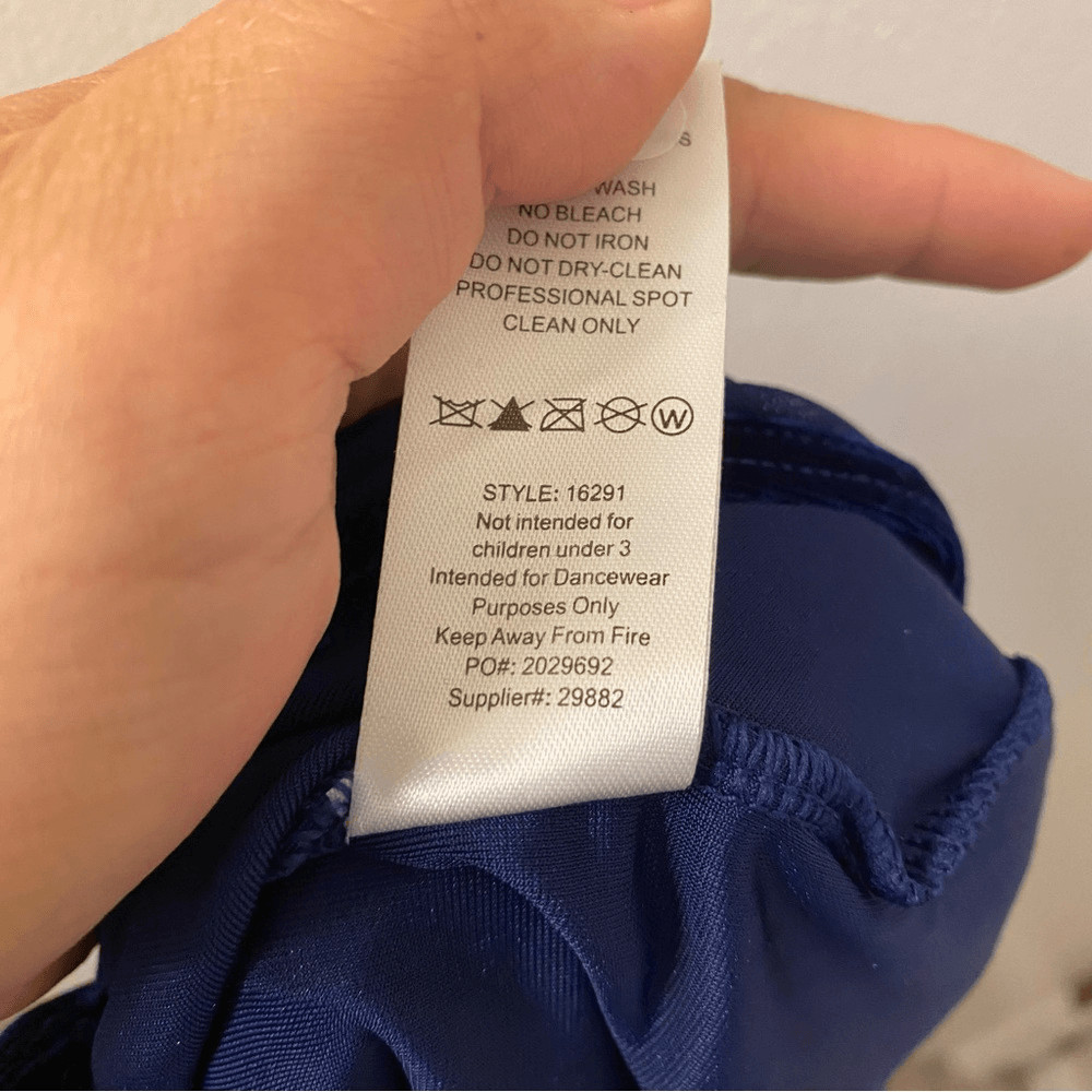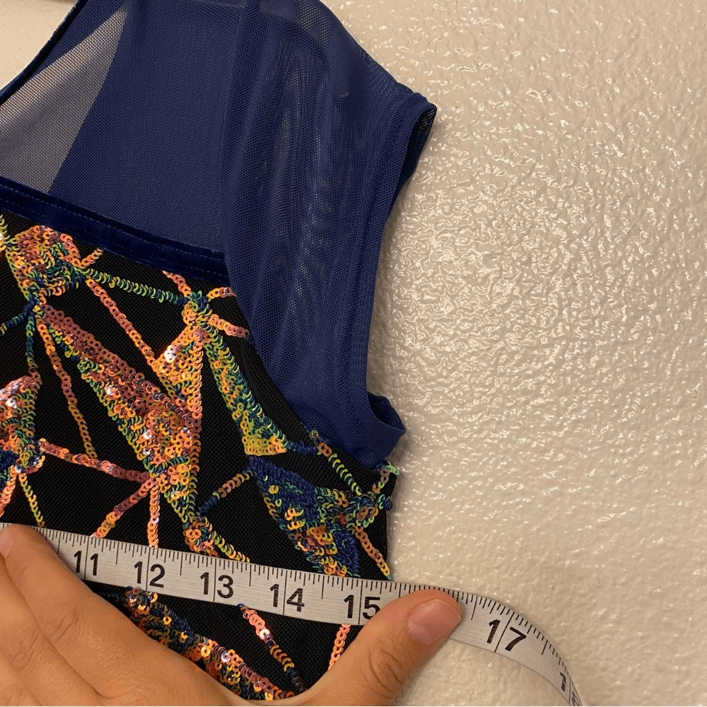как выглядит Weissman Dance costume blue sassy fringe sequin dress Misbehave 16291 child XLC фото