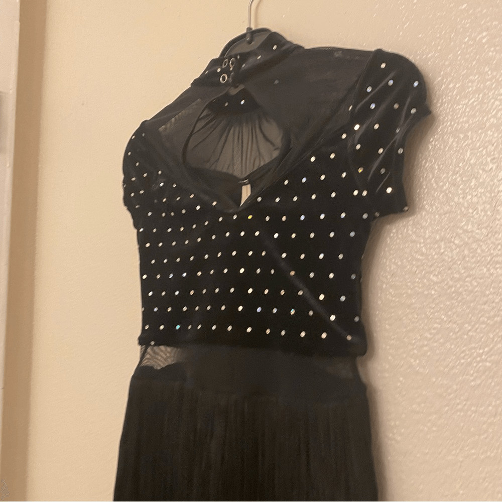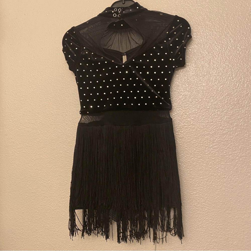 как выглядит Weissman dance costume black velvet crystal fringe End Of Time 13009 MC 10/12 фото
