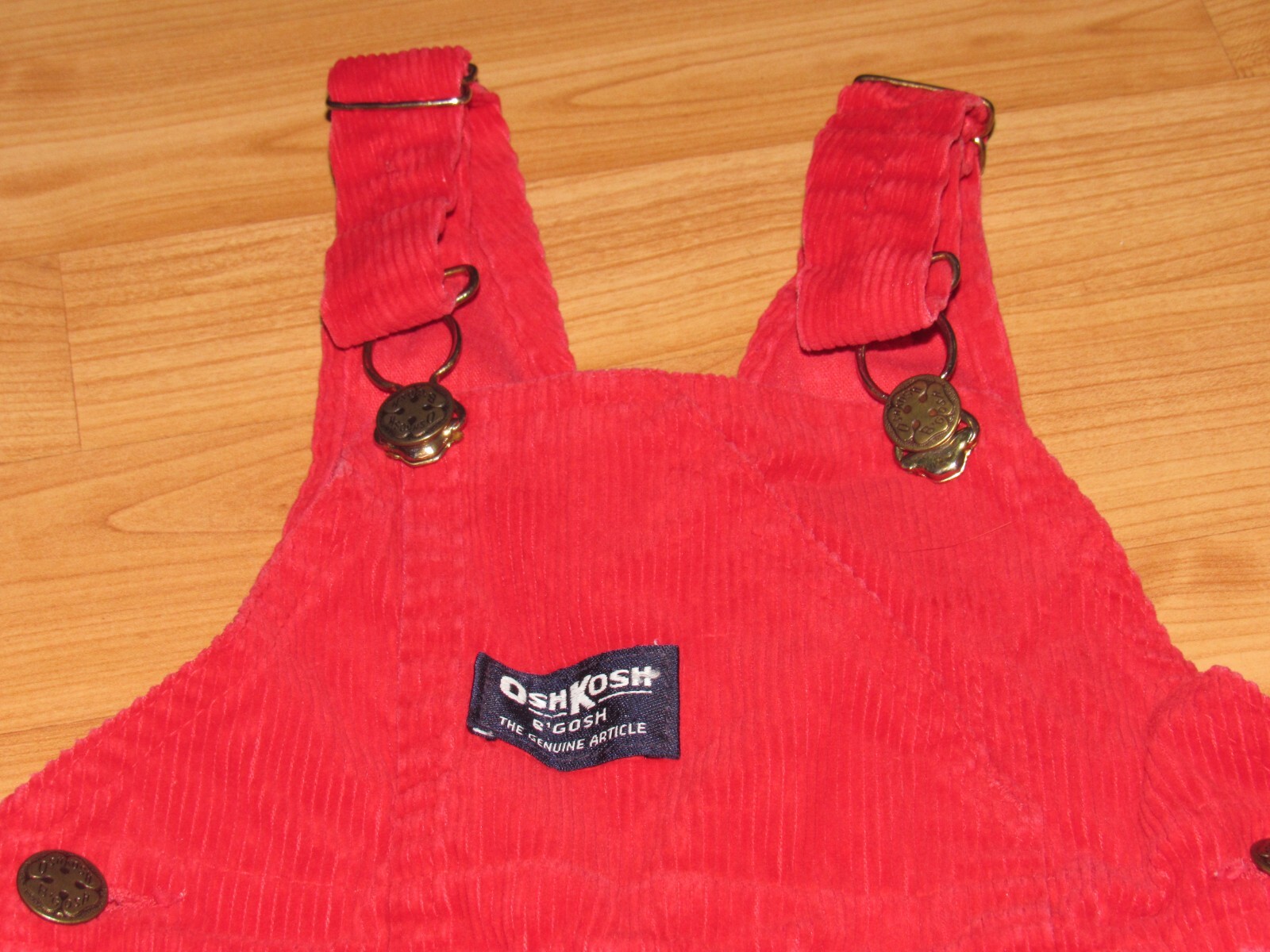 Vintage OSH KOSH B'GOSH Overalls 24 Months Vestbak Red Corduroy Tractor Cat EUC