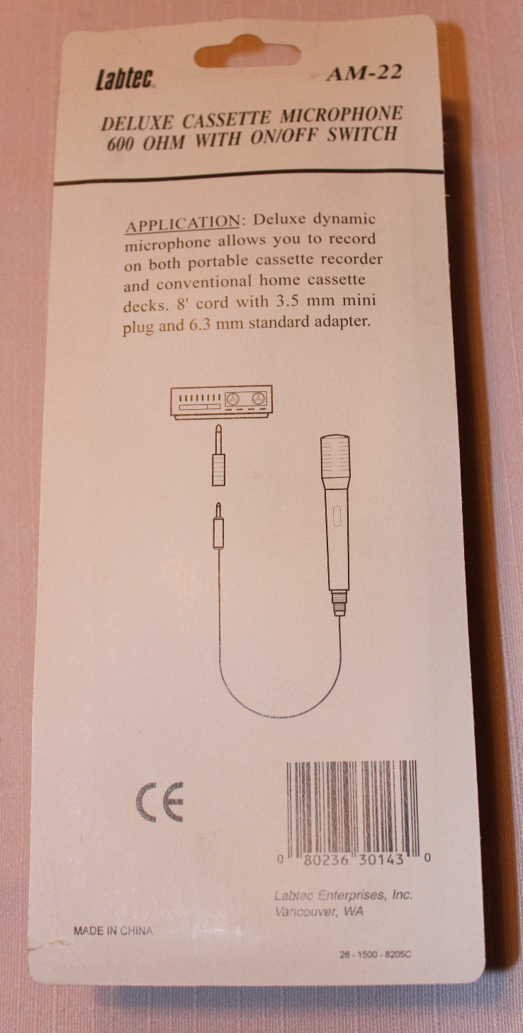 6 LOT Labtec Deluxe AM-22 Cable Consumer Microphone 600 OHM 3.5 6.3 mm