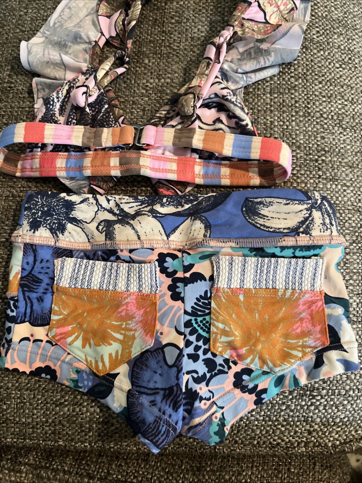 Maaji Girls Swim Ruffle Floral 2 Piece Bikini Top Boy Short Bottom Multi Sz 2