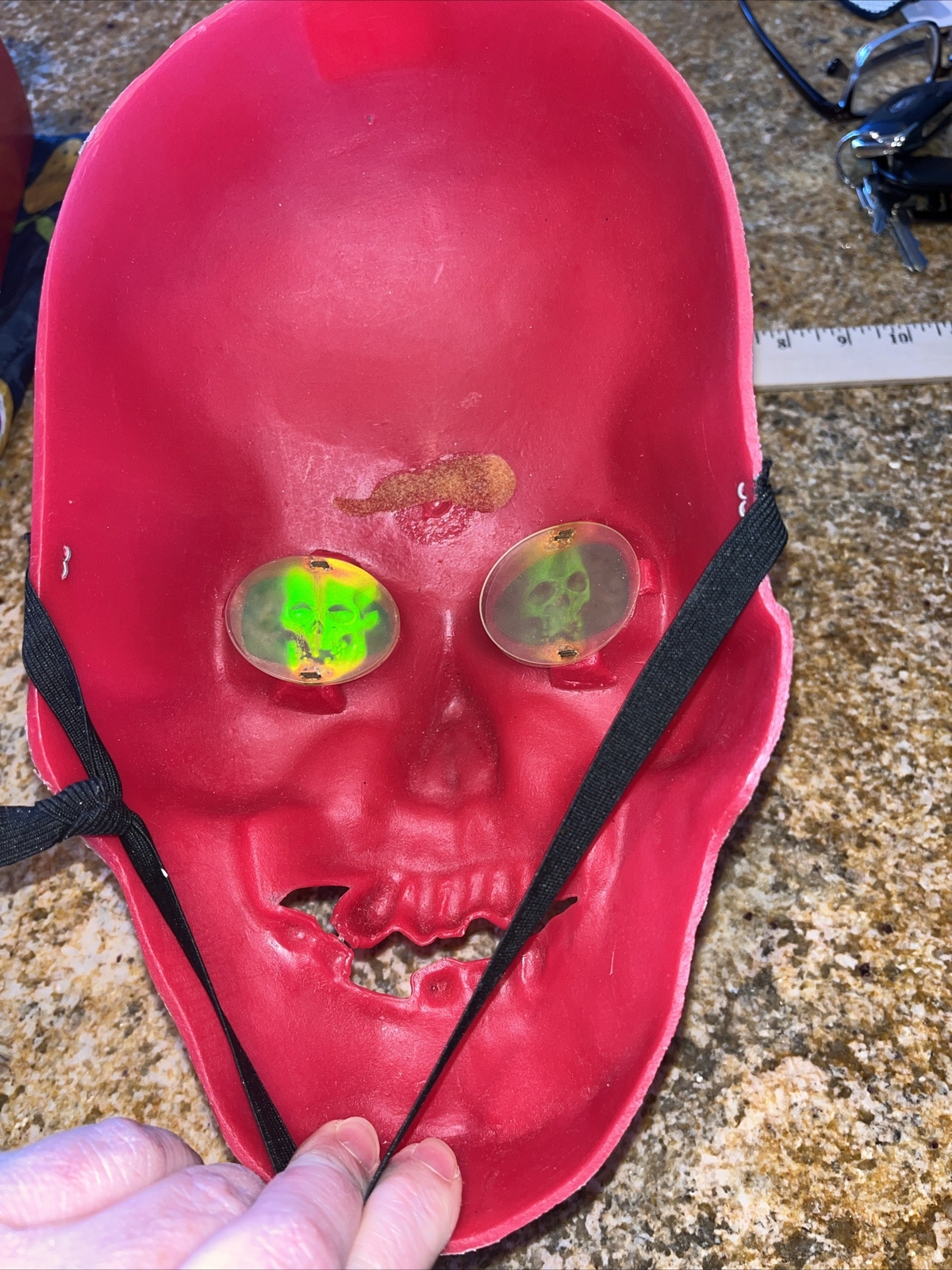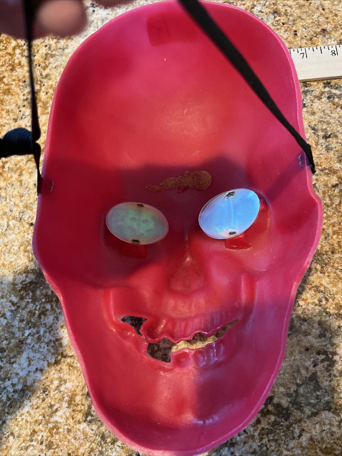 Halloween Red Creature Skull Smiling Crooked Teeth Skull Eyes Mask RARE