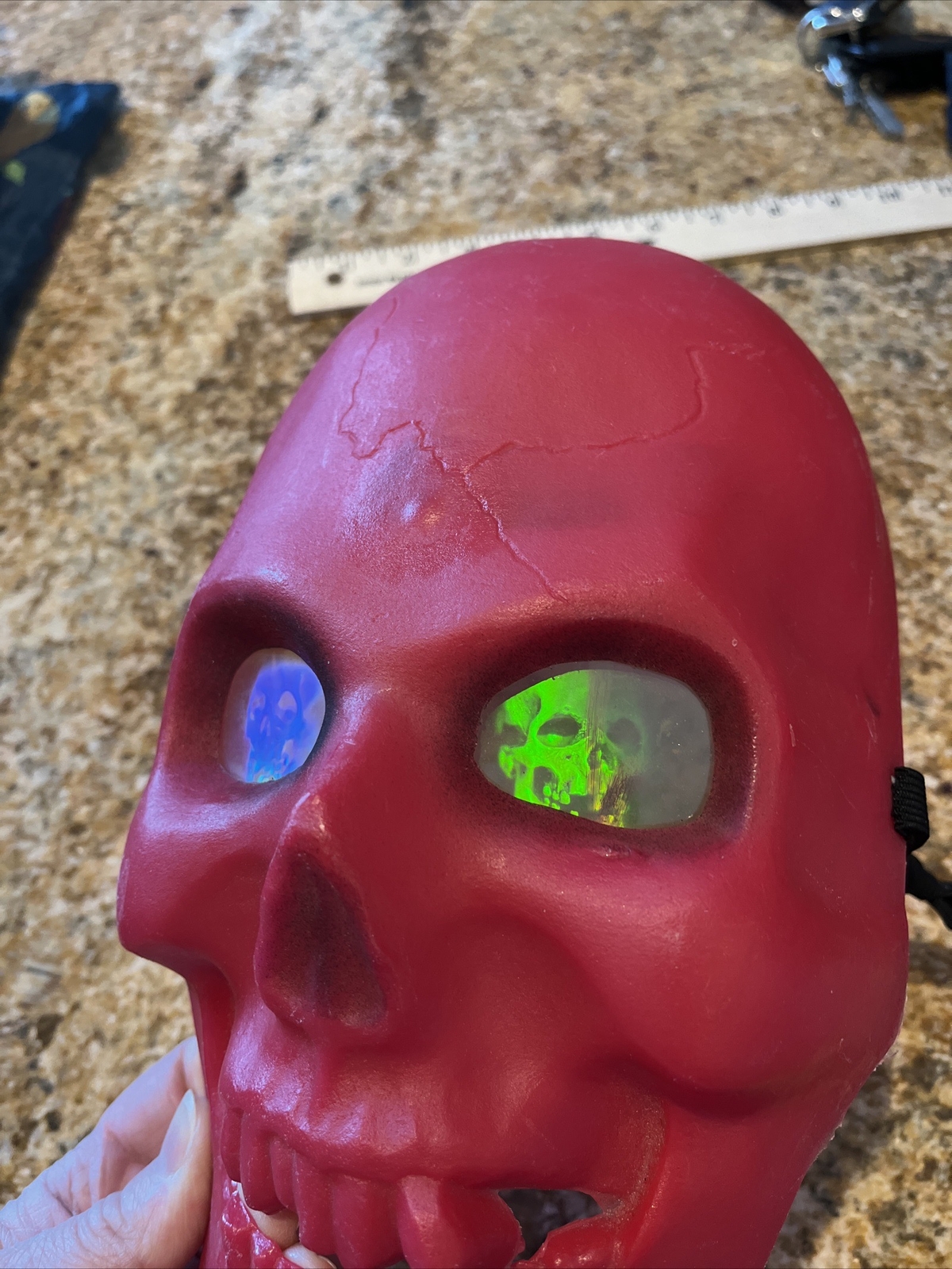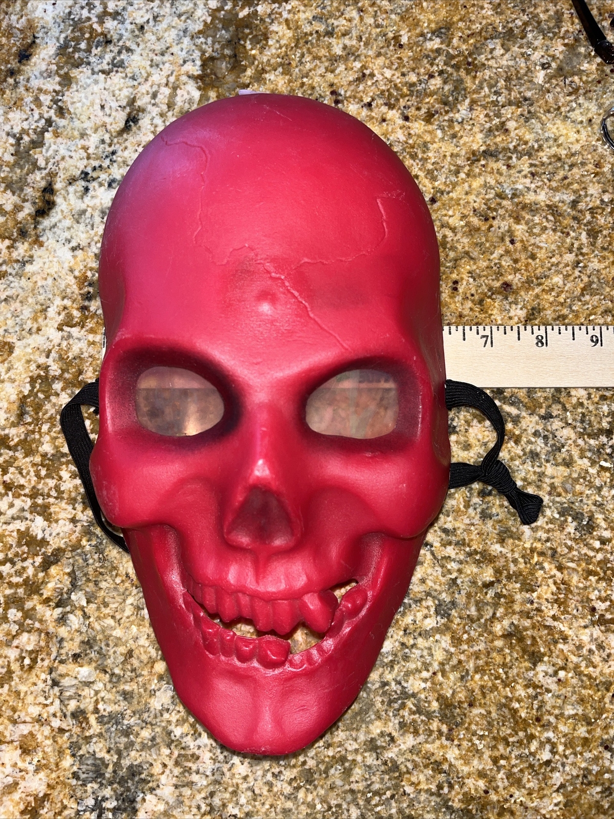 • Halloween Red Creature Skull Smiling Crooked Teeth Skull Eyes Mask RARE