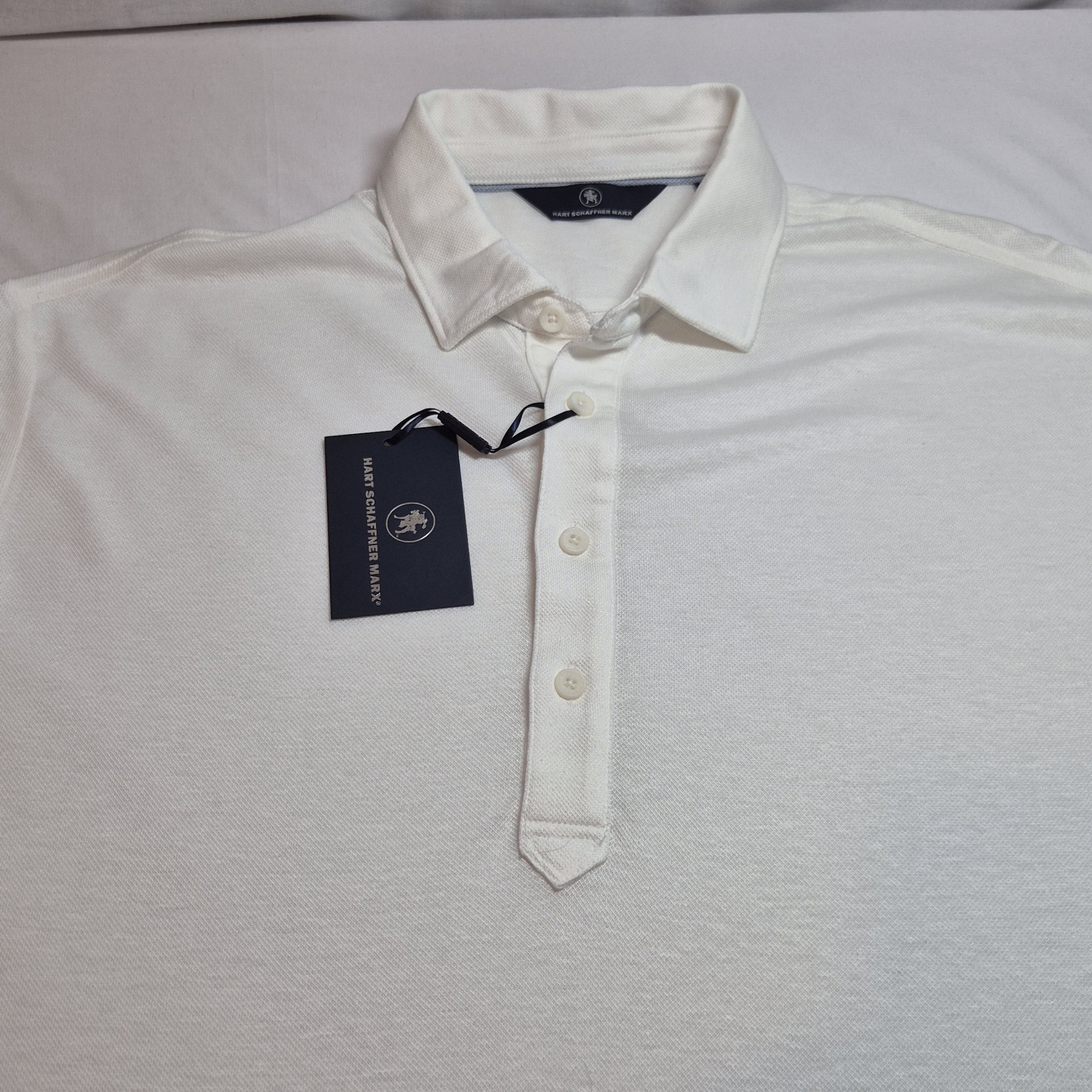 как выглядит Hart Schaffner Marx Men s short Sleeve Polo Shirt Size L White 06 фото