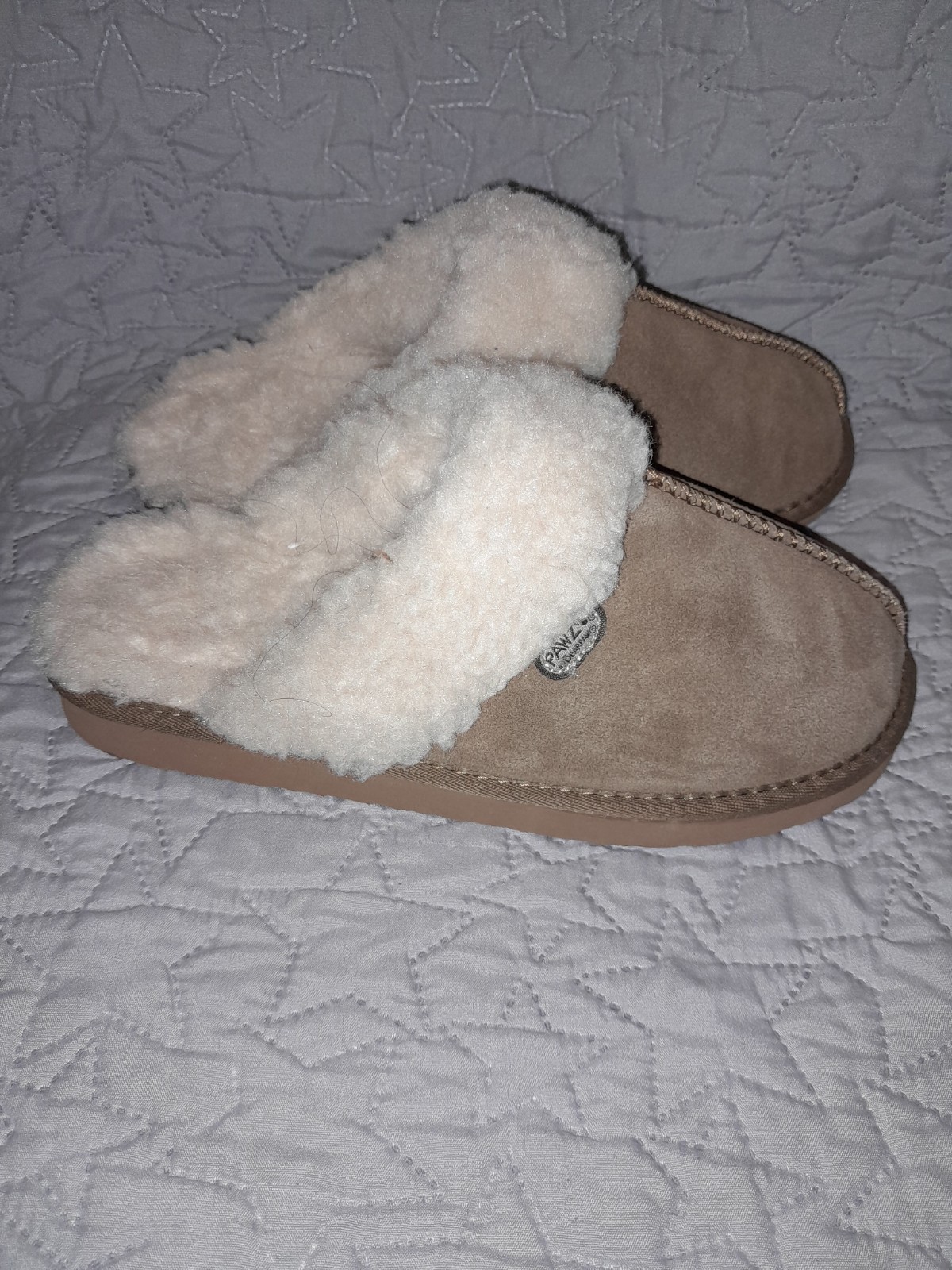 как выглядит Pawz by Bearpaw Slipper Womens Size 9 Beige Mackenzie Closed Toe Sheepskin Suede фото