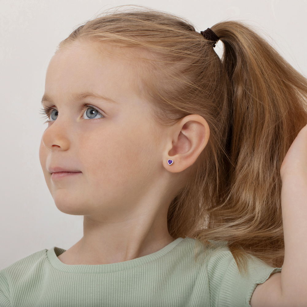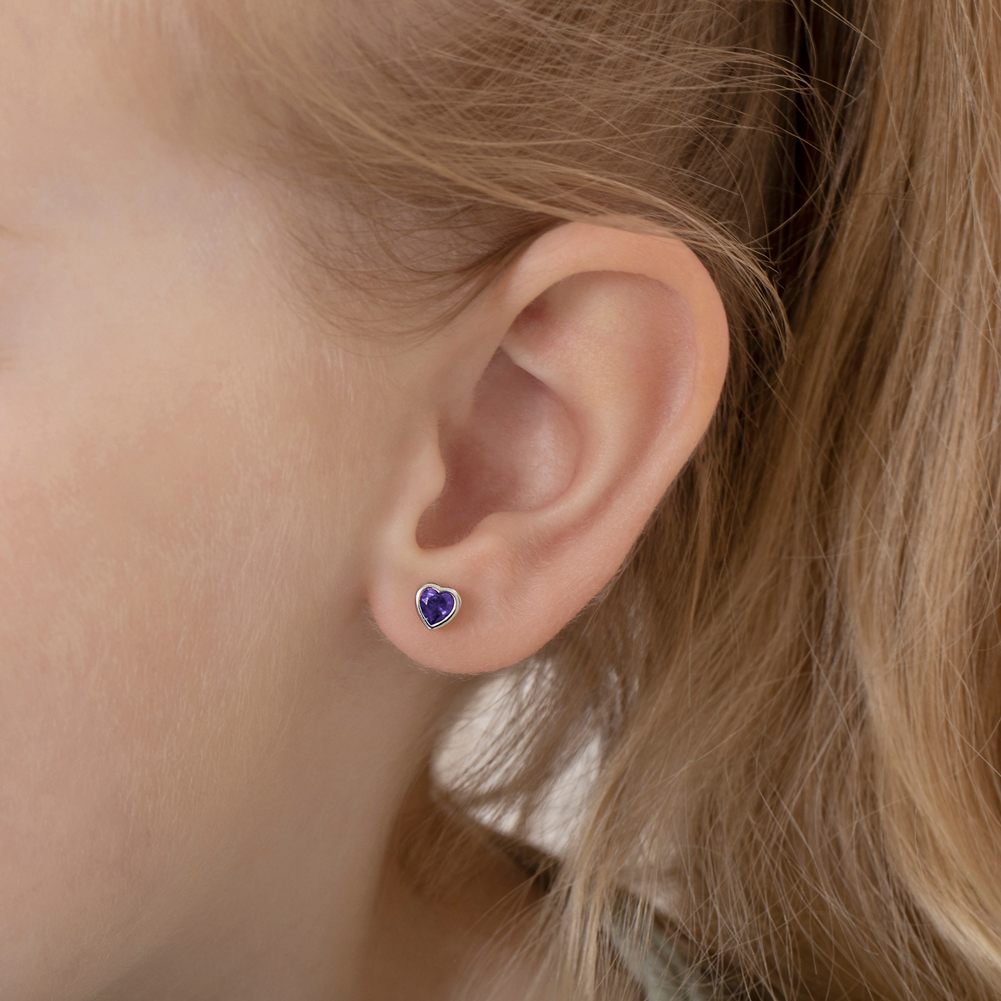 как выглядит CZ Birthstone Heart Baby / Toddler / Kids Earrings Screw Back - Sterling Silver фото