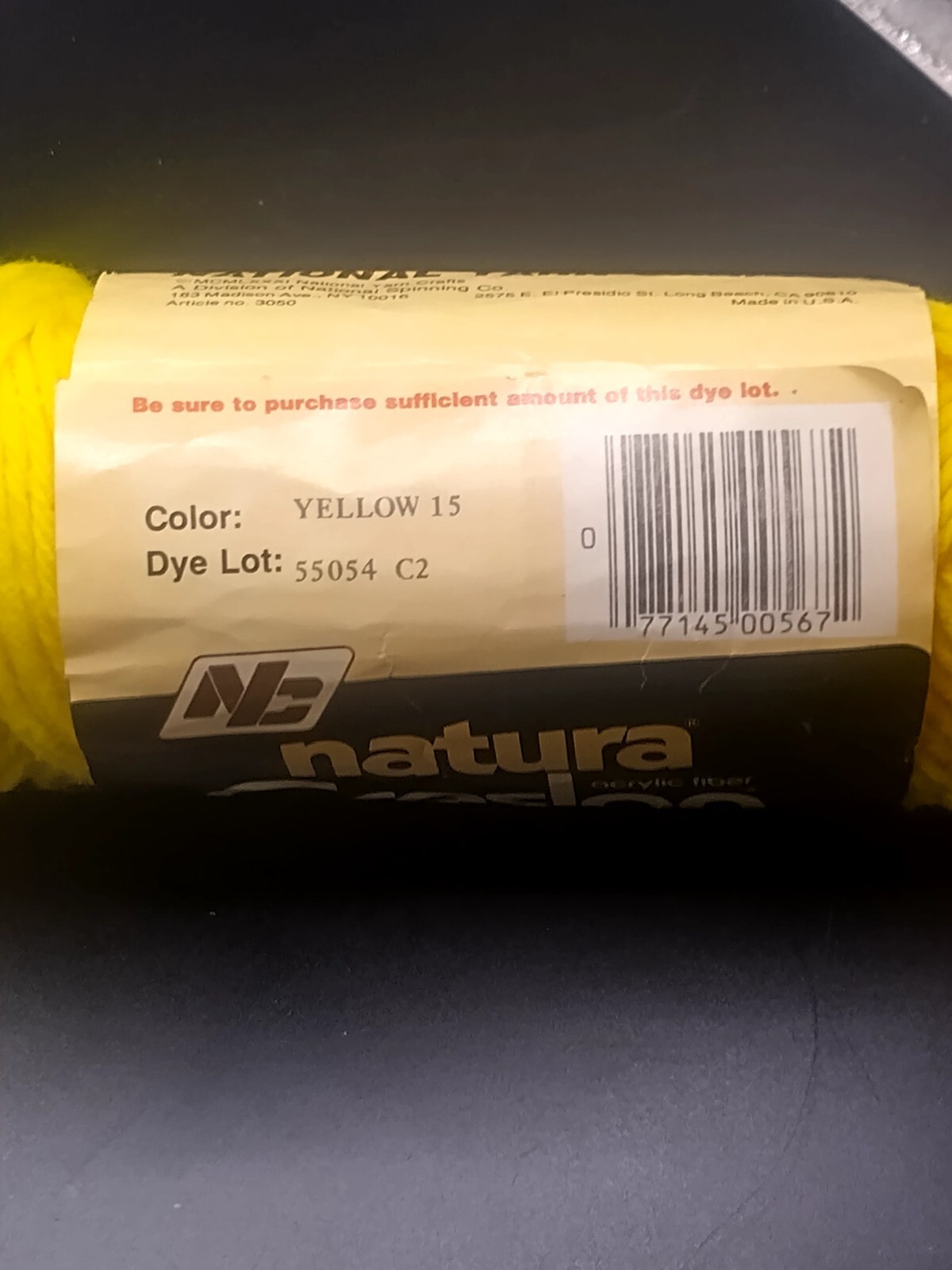 Natura Creslan Acrylic Yarn Yellow 15 Color 55054 4 PLY 3 oz USA One Skein. 1I