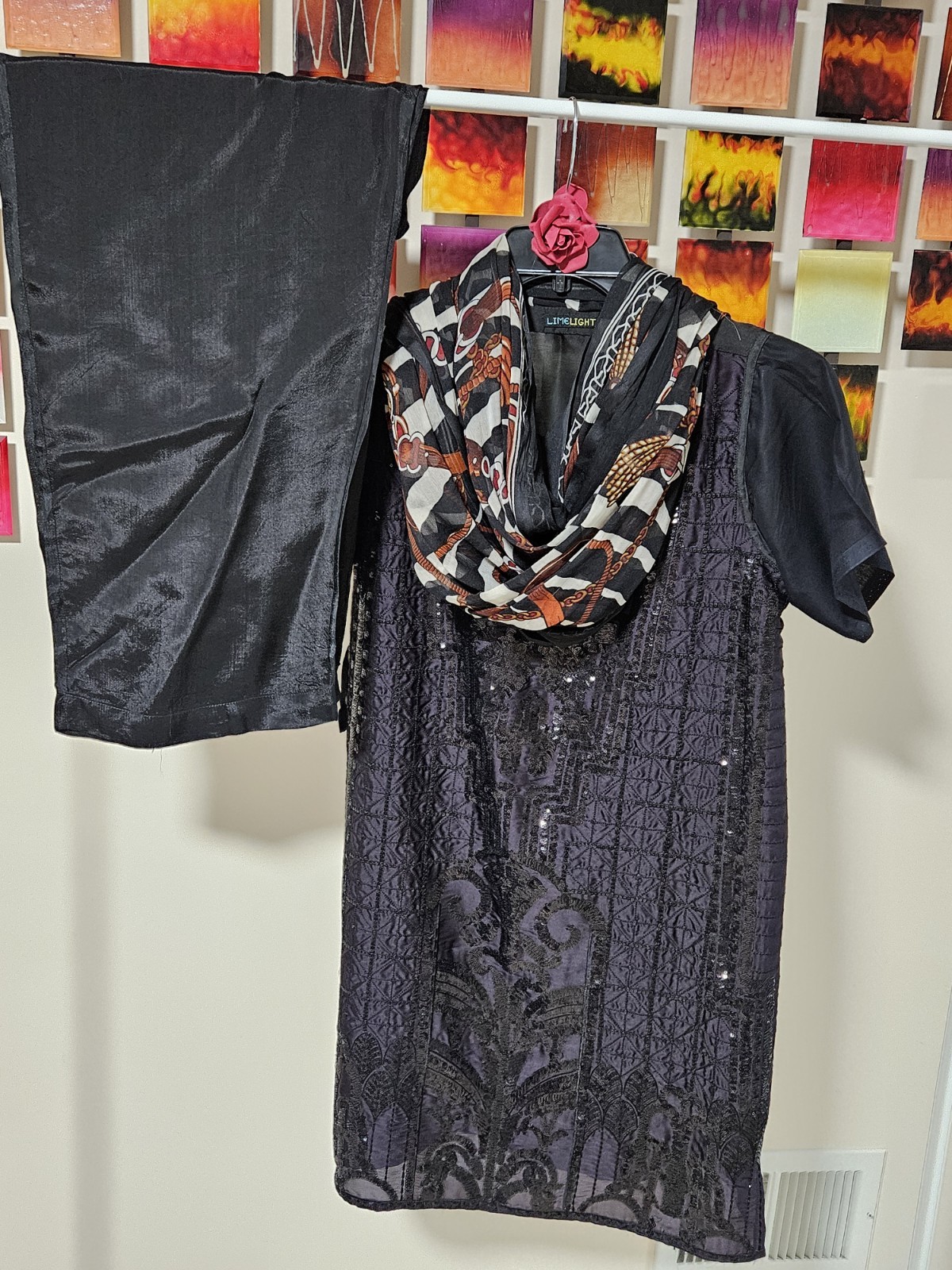 как выглядит 3 Piece Set Indian Pakistani Kurta Dress Womens Size M Black Sequins Kameez фото