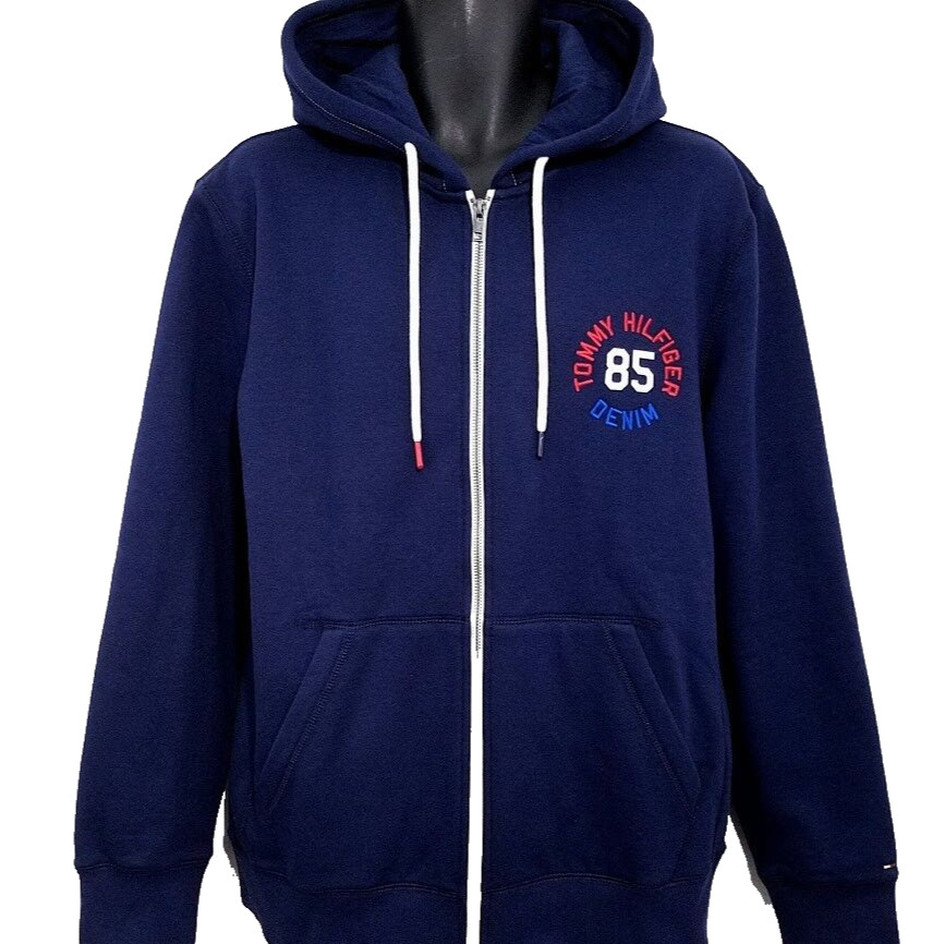 Tommy Hilfiger Sweatshirt Hoodie Mens Size Large Blue Full Zip Spell Out Retro