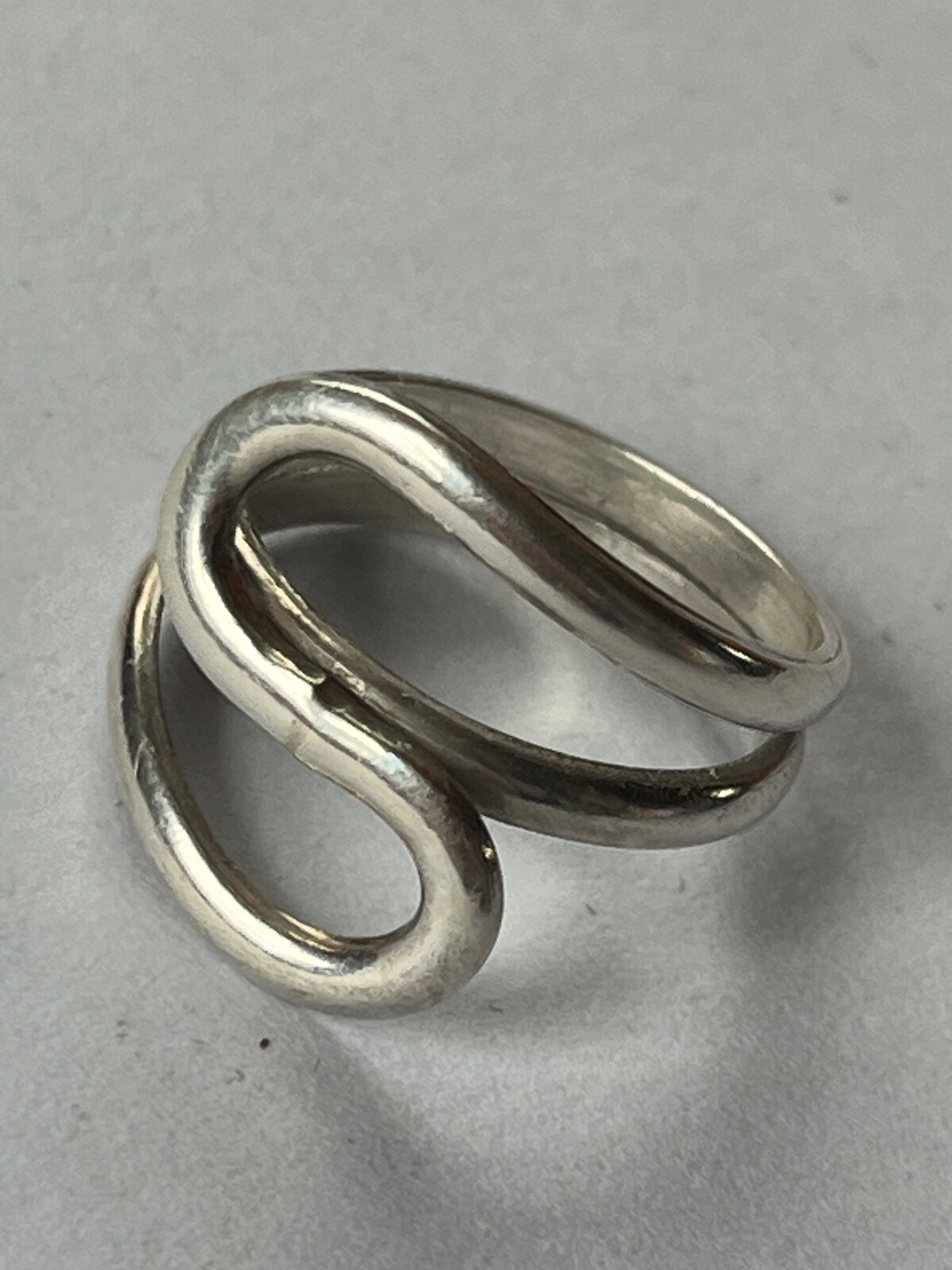 как выглядит Wide 925 Marked Silver Open Swirl Band Ring Size 8 - top of ring is nearly 0.75 фото