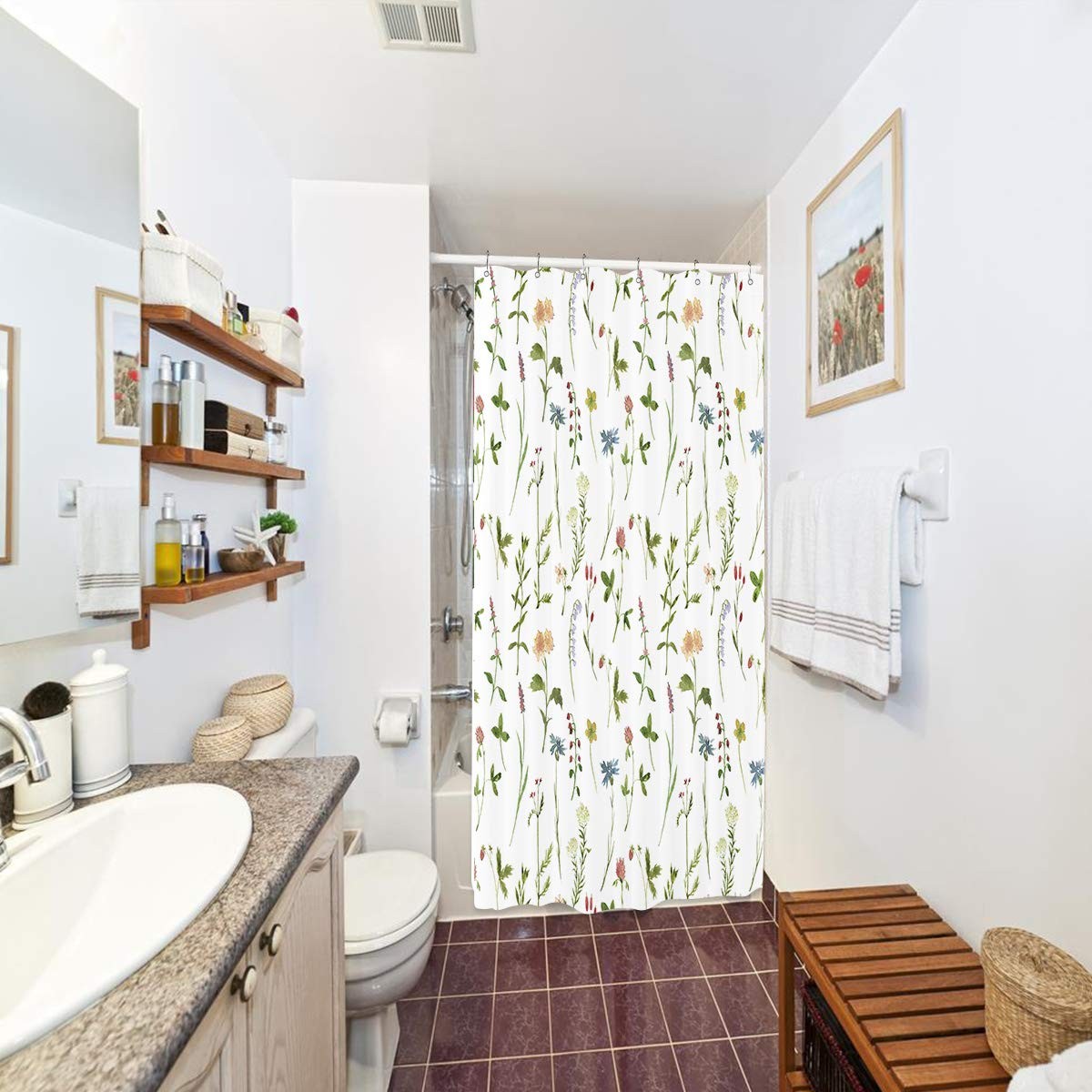 Small Stall Floral Shower Curtain 36Wx72H Inch Half Rv Wildflower Rustic Bota...