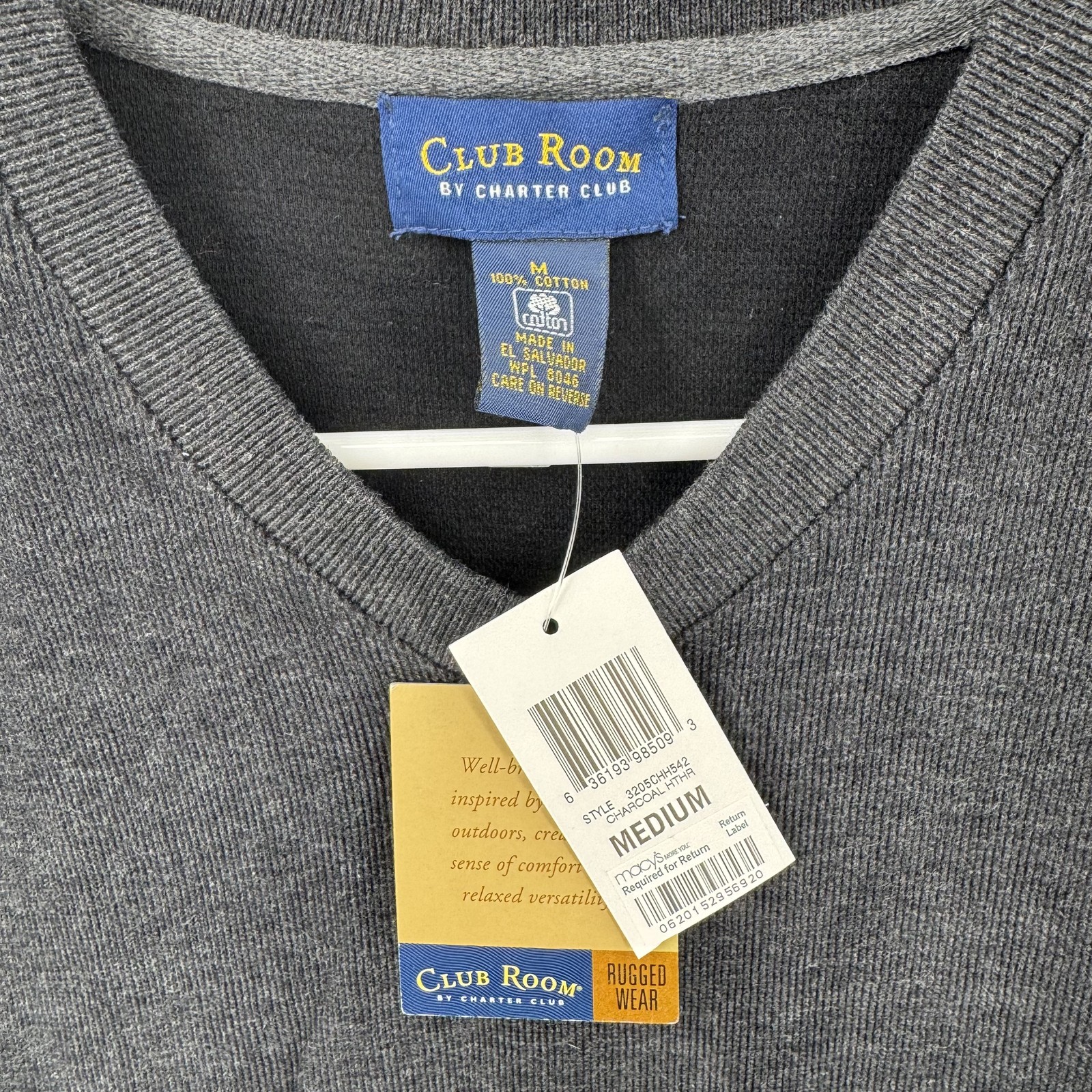 Club Room Sweater Mens Medium V Neck Pullover Long Sleeve Rugged Wear Casual NWT