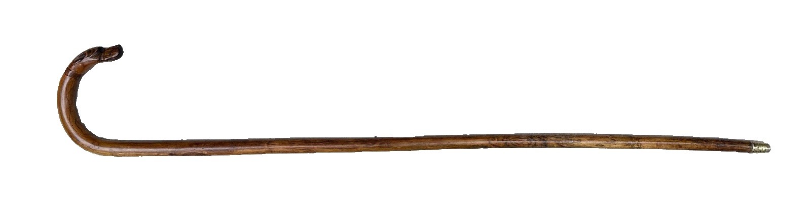 Vintage Antique Carved Wood Dog Head Brass Tip Crook Handle Walking Stick Cane