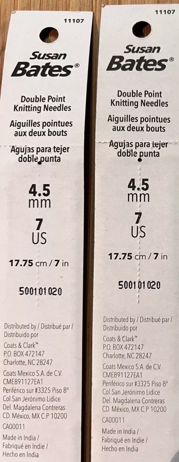LOT OF 2 PKGS SUSAN BATES SILVALUME DOUBLE POINT KNITTING NEEDLES 7 IN 4.5mm NEW