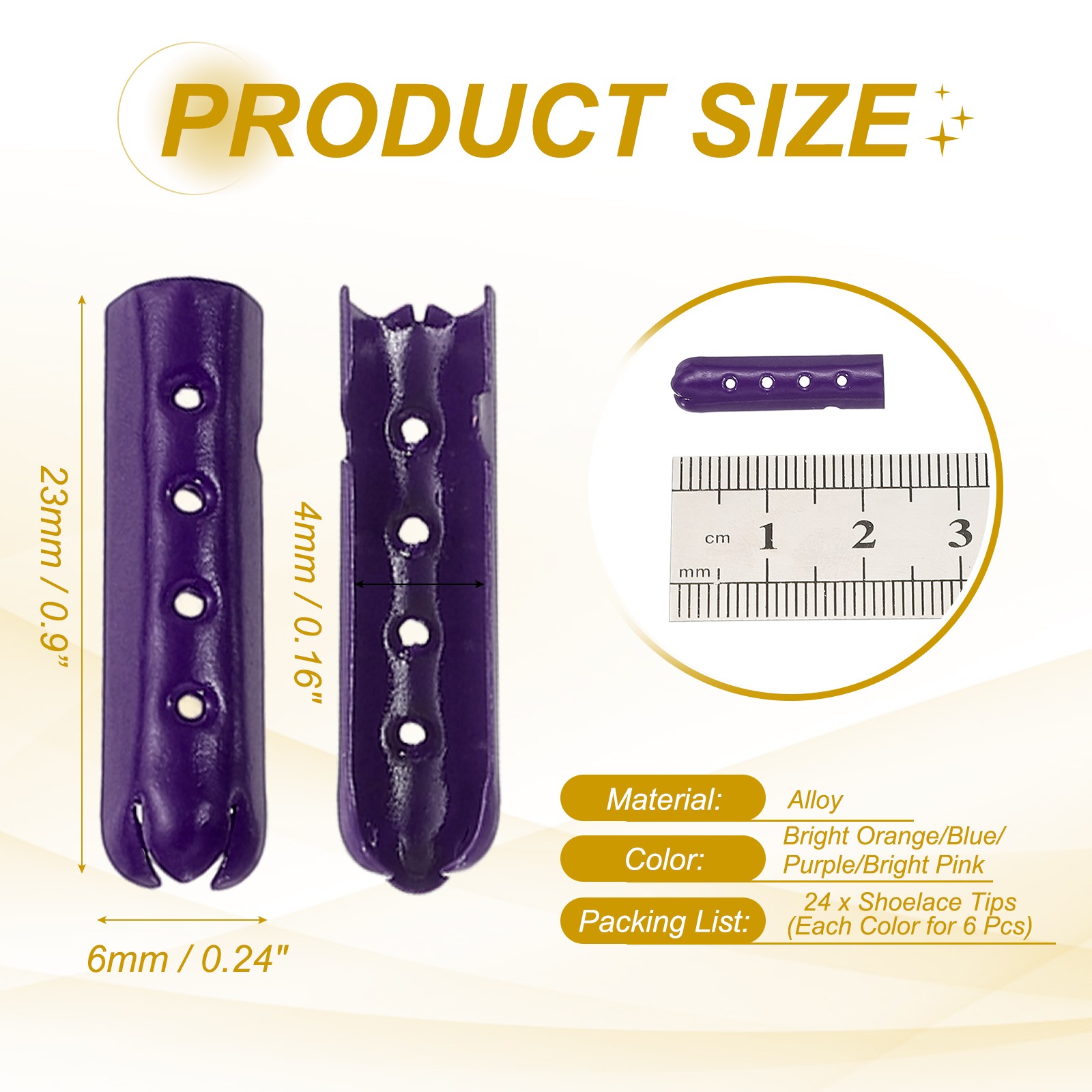 24Pcs 23mm Open Mouth Shoelace Tips Caps, Bright Orange/Bright Pink/Blue/Purple