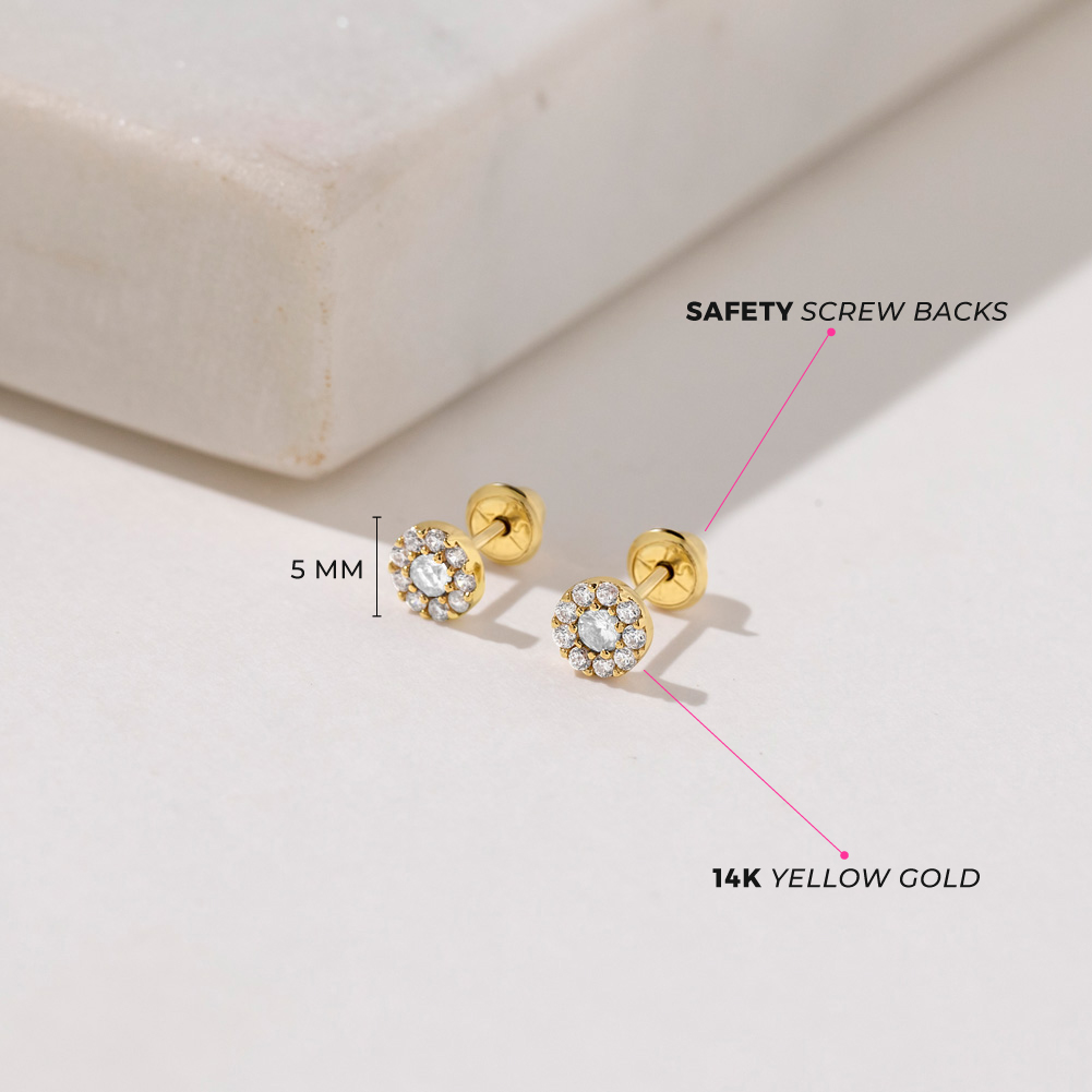 14k Gold CZ Burst Kids / Children's / Girls Earrings Safety Screw Back