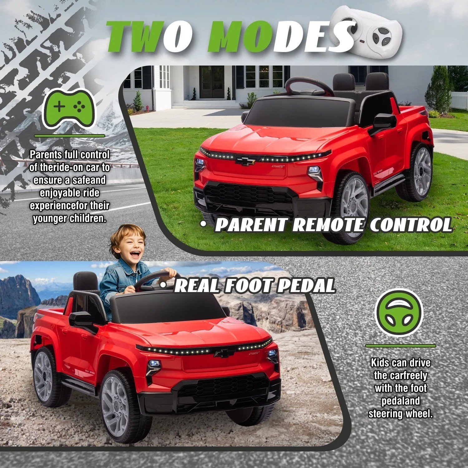 Kids Ride on Truck Licensed Chevrolet Silverado Electric Car Toy with Remote