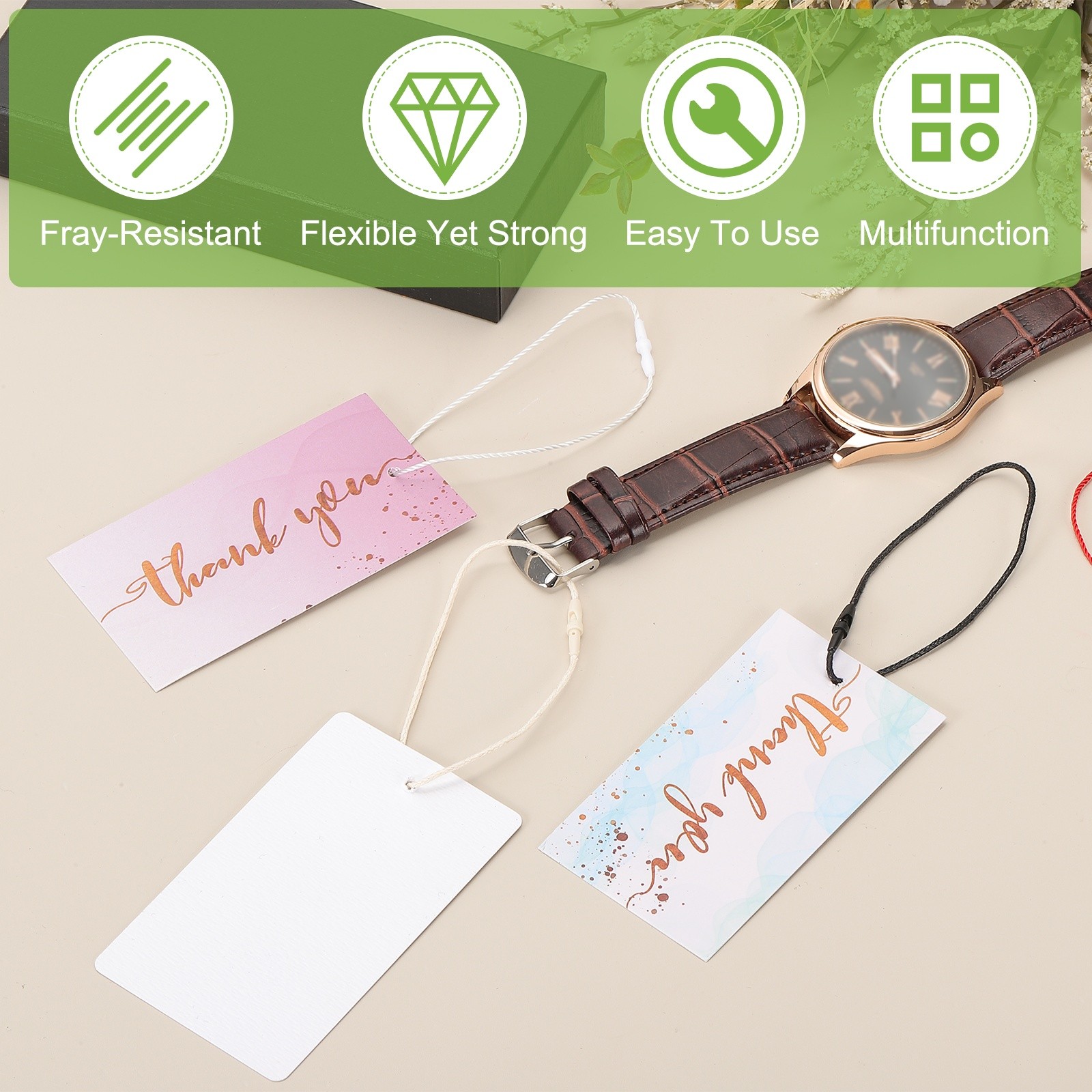 300 Pcs Cotton Hang Tag String, 8 Inch Black Snap Lock Pins Loop Price Tag