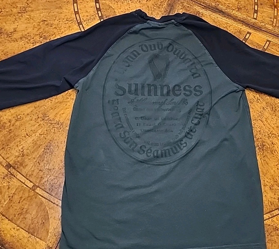 как выглядит Guinness Baseball Shirt Long Sleeve Green And Black 100 Cotton Size M фото