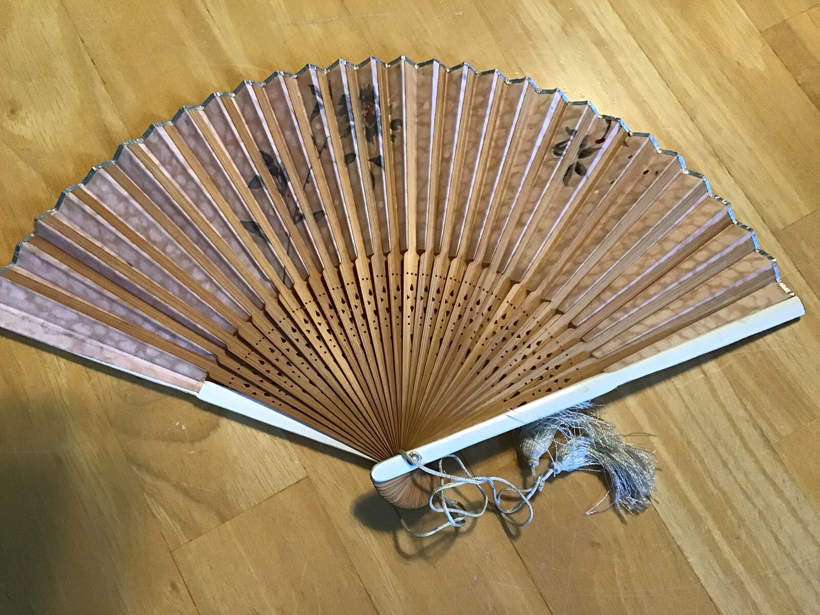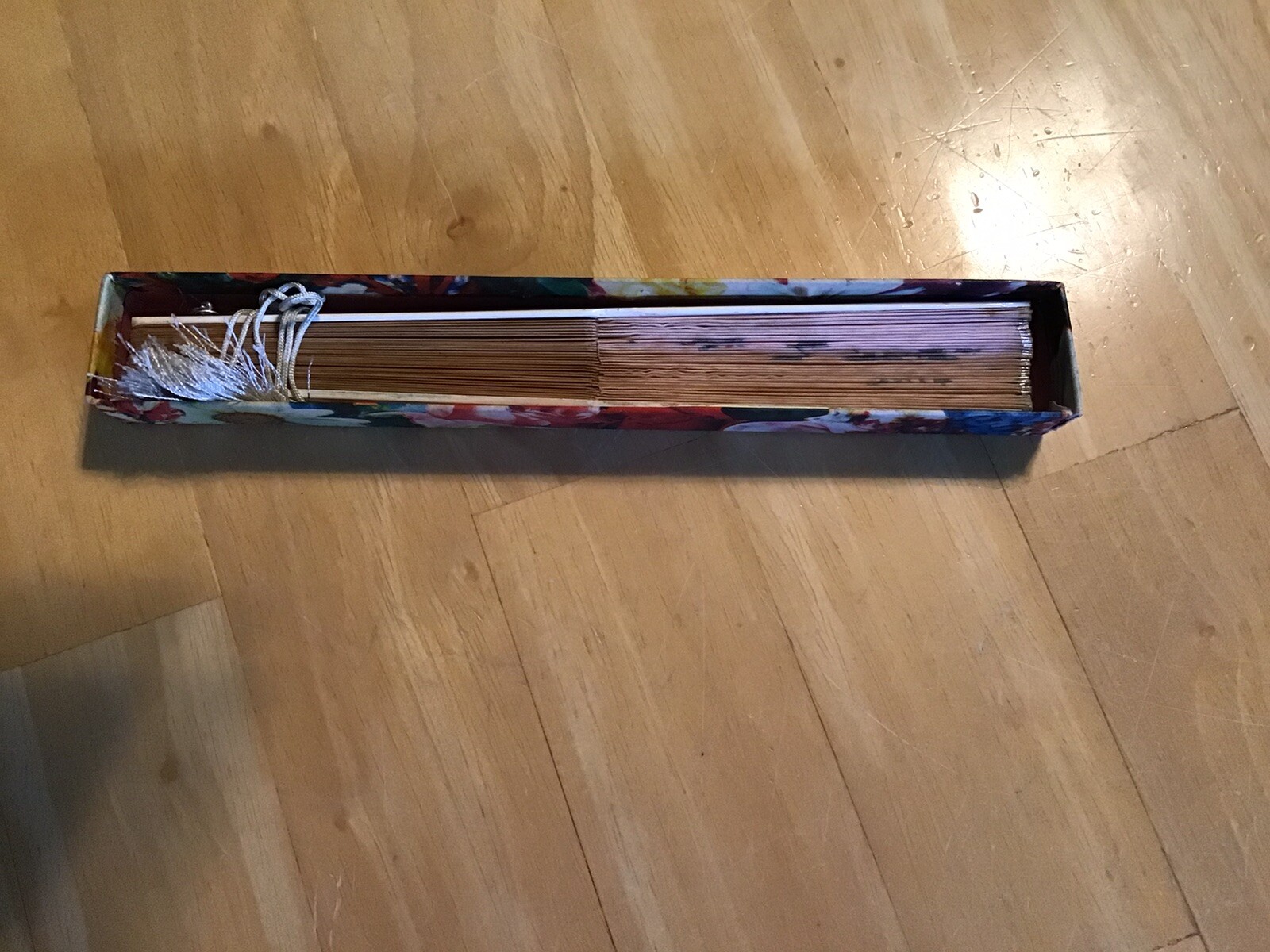 как выглядит Vintage Paper And Wood Hand Held Folding Fan Sparkly Edges Original Box фото