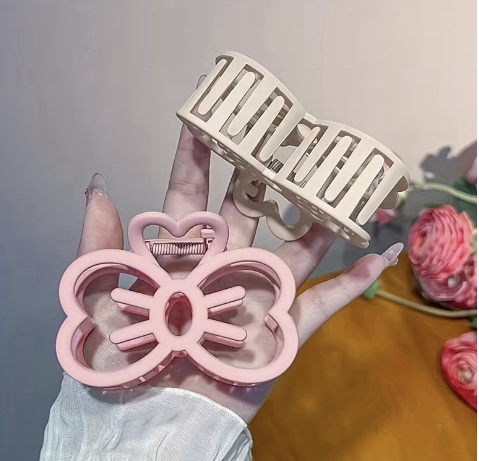 Pink Bow Floral Sculpted Hair Claw Hair Clip Non Slip All Hair Types Strong