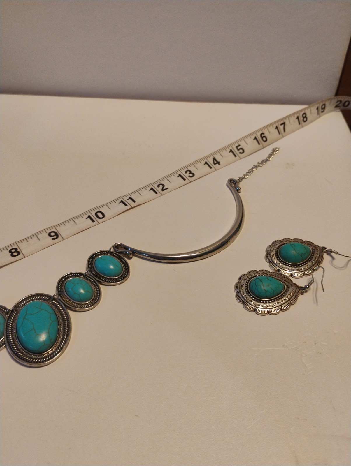 Boho Western Silver Jewelry Set Turquoise Choker Dangle Earrings
