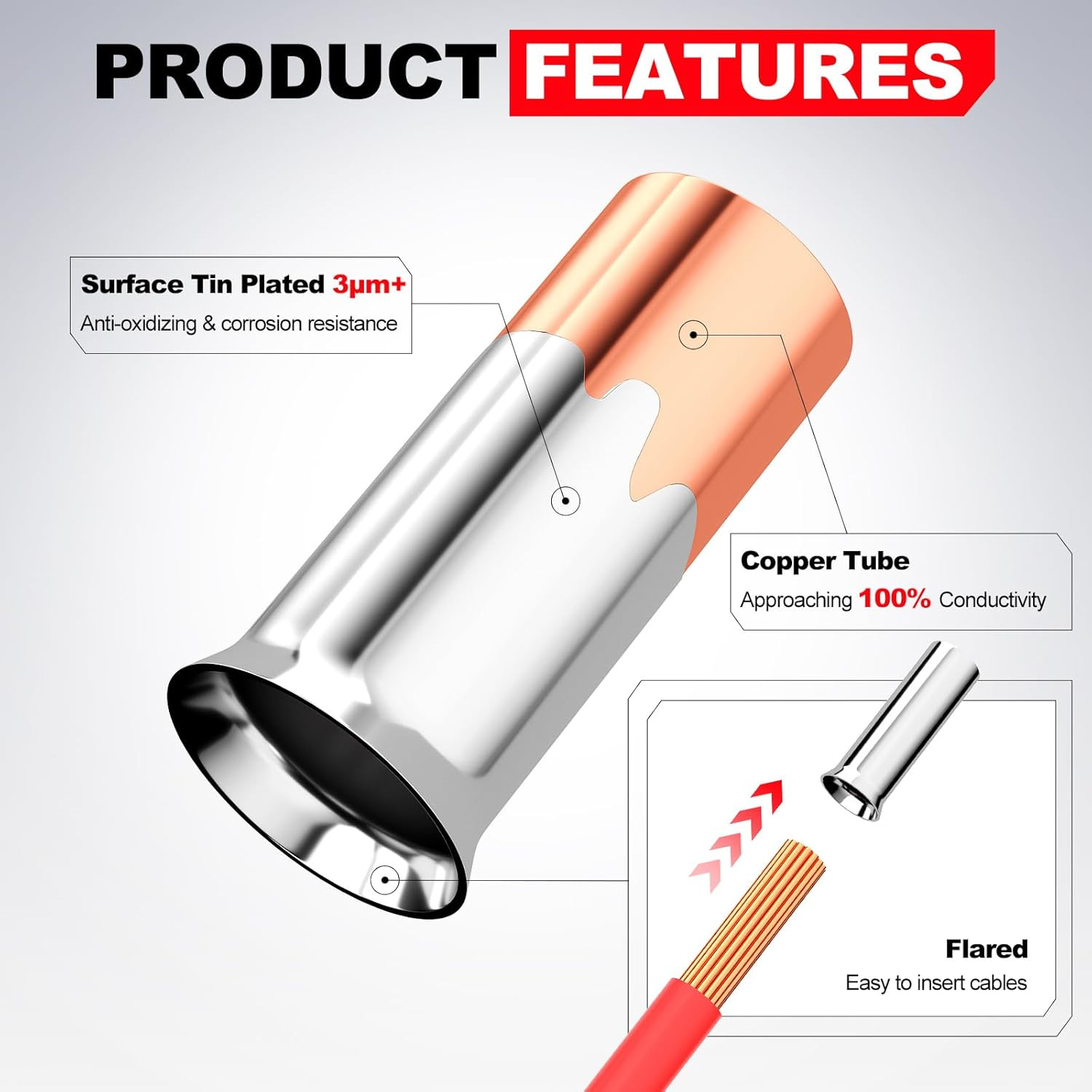 как выглядит 168Pcs Wire Ferrules Kit 12-1/0 AWG Tinned Copper Crimp Cable End Terminal Set фото