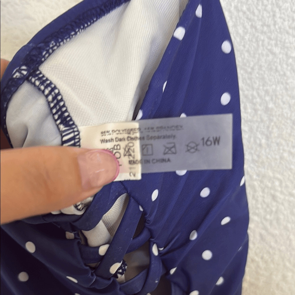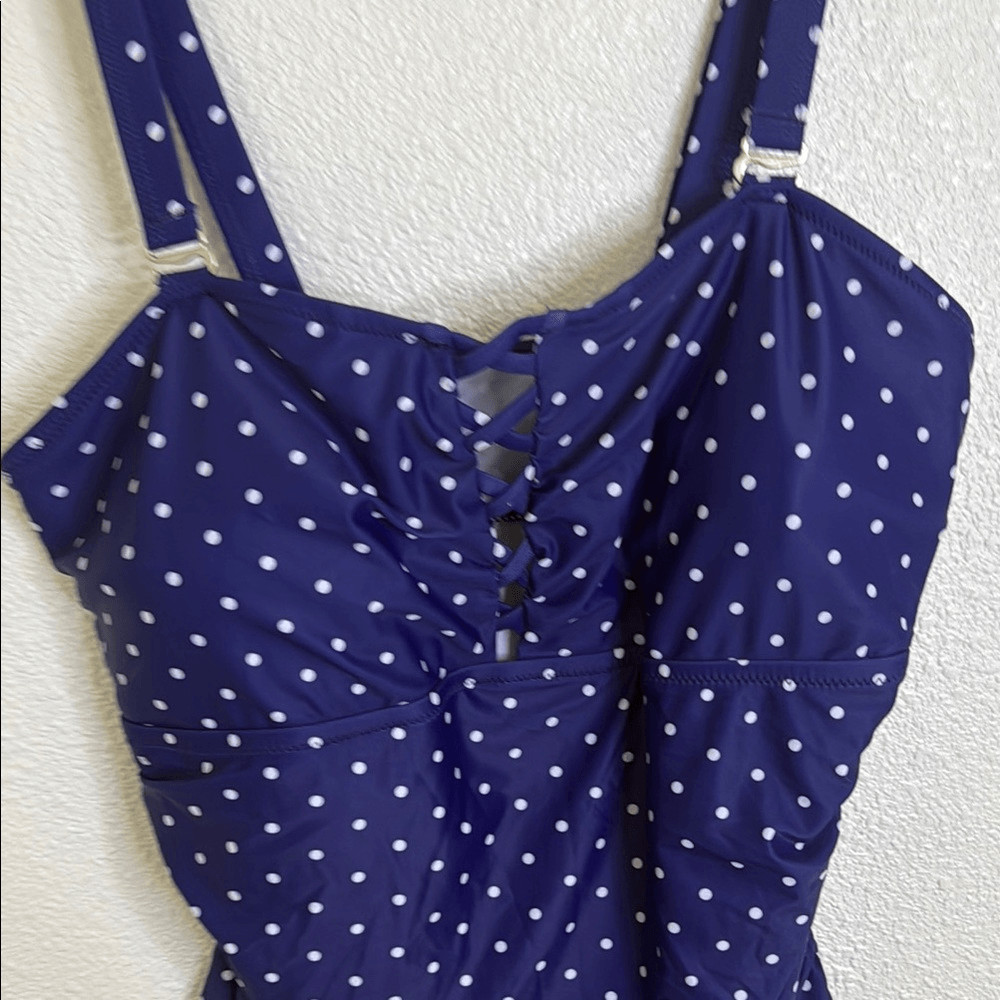 как выглядит Navy Polka Dot one piece Swimsuit- Size 16W фото