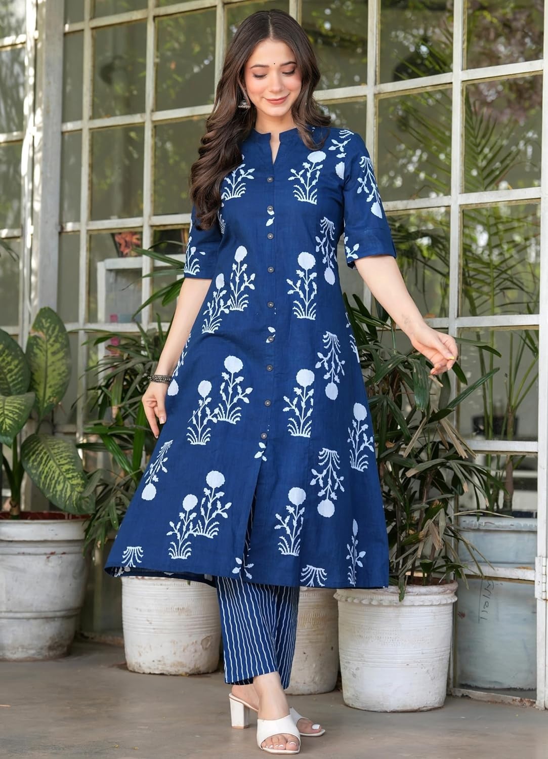 Women's Cotton A-Line Kurta Set with Palazzo Pant