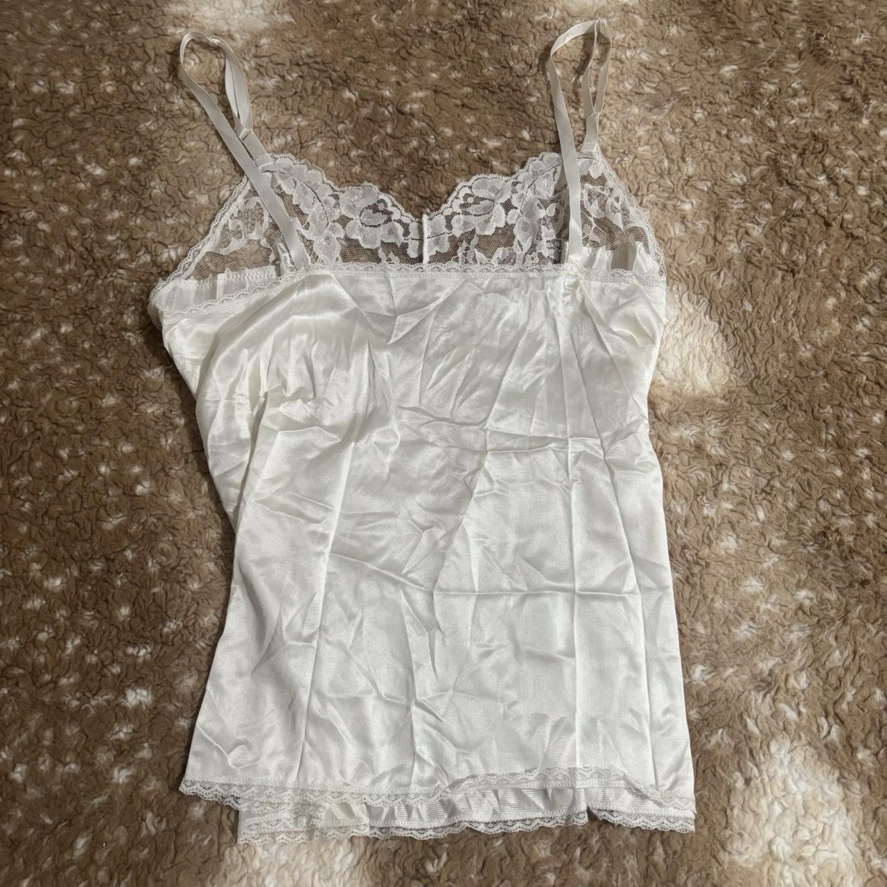 как выглядит Vintage Vassarette White Silky Cami Tank Top With Lace фото